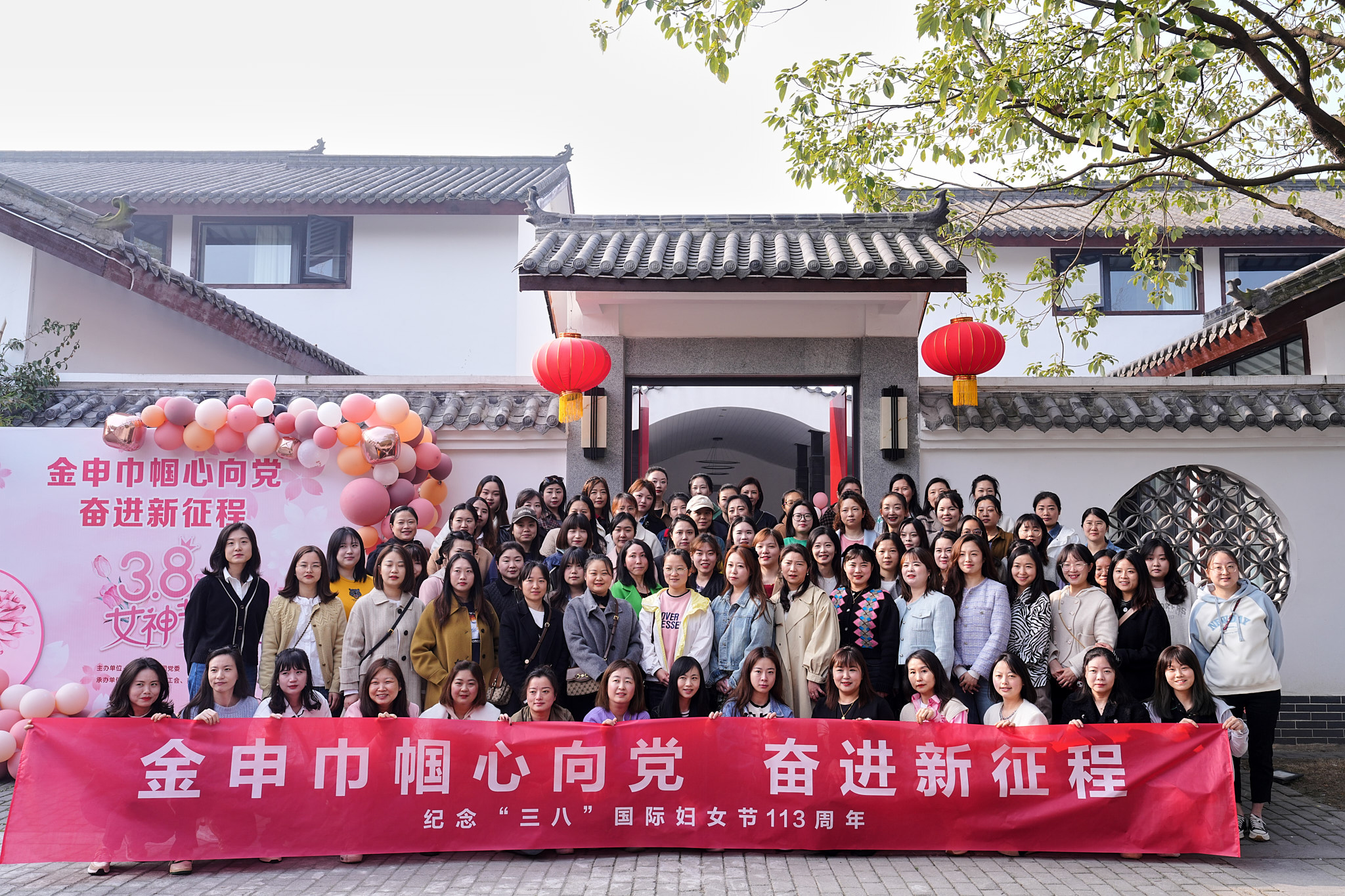 最美三月天,巾帼绽芳华。为深入学习贯彻党的二十大精神,引导广大妇女职工把感恩党、感恩新时代的真挚情感化为奋进建功的实际行动。3月8日上午,金申集团公司工会、团委、妇联组织集团公司90余名妇女职工在年画村画境·院子开展了“金申巾帼心向党 奋进新征程”为主题的庆祝活动。