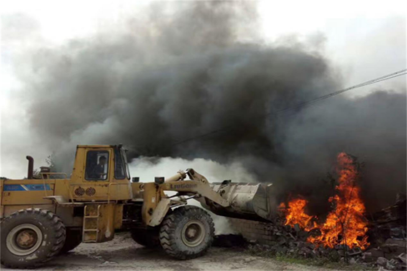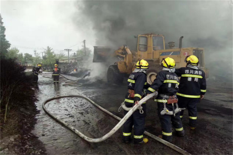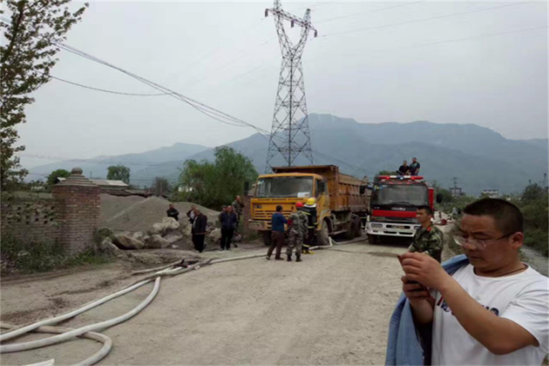 2017年4月15日汉旺镇牛鼻子村废旧轮胎收购点,突发大火。我公司在接汉旺镇政府通知后,立即调用货车及装载机前往火灾事发点,在经消防大队专业指挥下,运输砂石至现场参与救火。