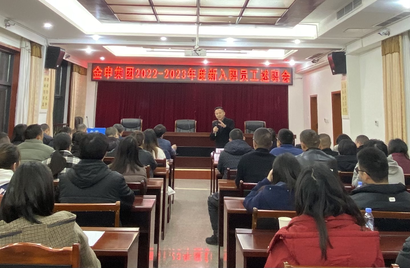2023年12月14日,金申集团公司召开2022-2023年新进员工述职会,集团公司党委书记胡凌飞、党委副书记秦林、纪委书记孙江、相关公司及集团部门负责人、新员工共计40余人参加。