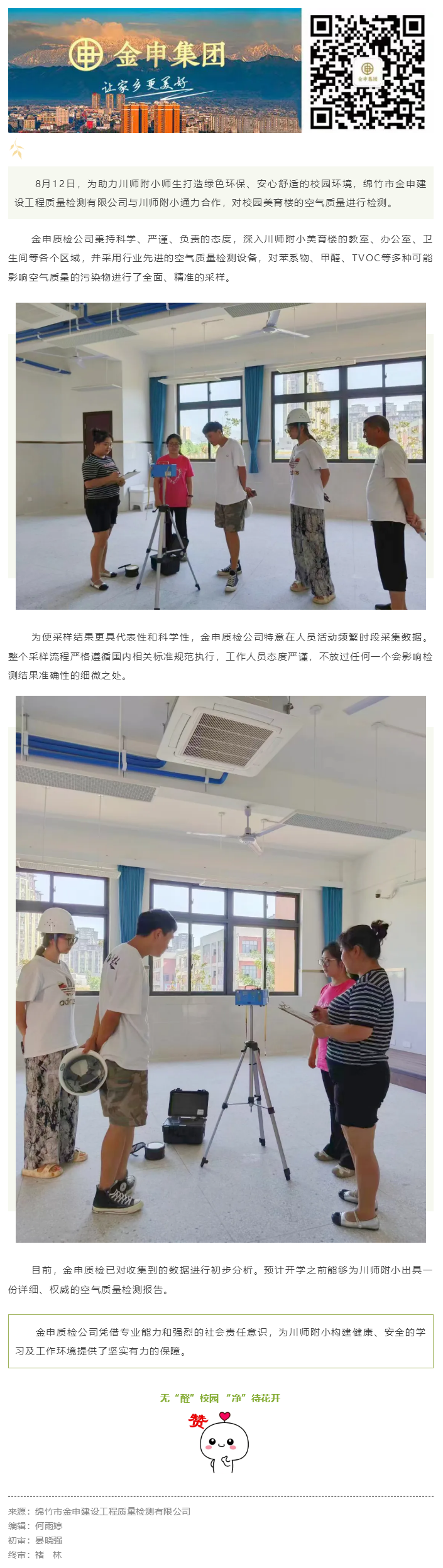 无“醛”校园|金申质检为川师附小空气质量保驾护航