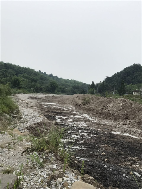 该条河段淤塞较重的地方大约一公里长,主要采取降低河心、垒筑护坡的方式进行清淤。为了确保及时排除隐患,我公司加班加点,人停机不停地对该河段进行清淤,最终使用2天半时间完成了该段清淤工作。