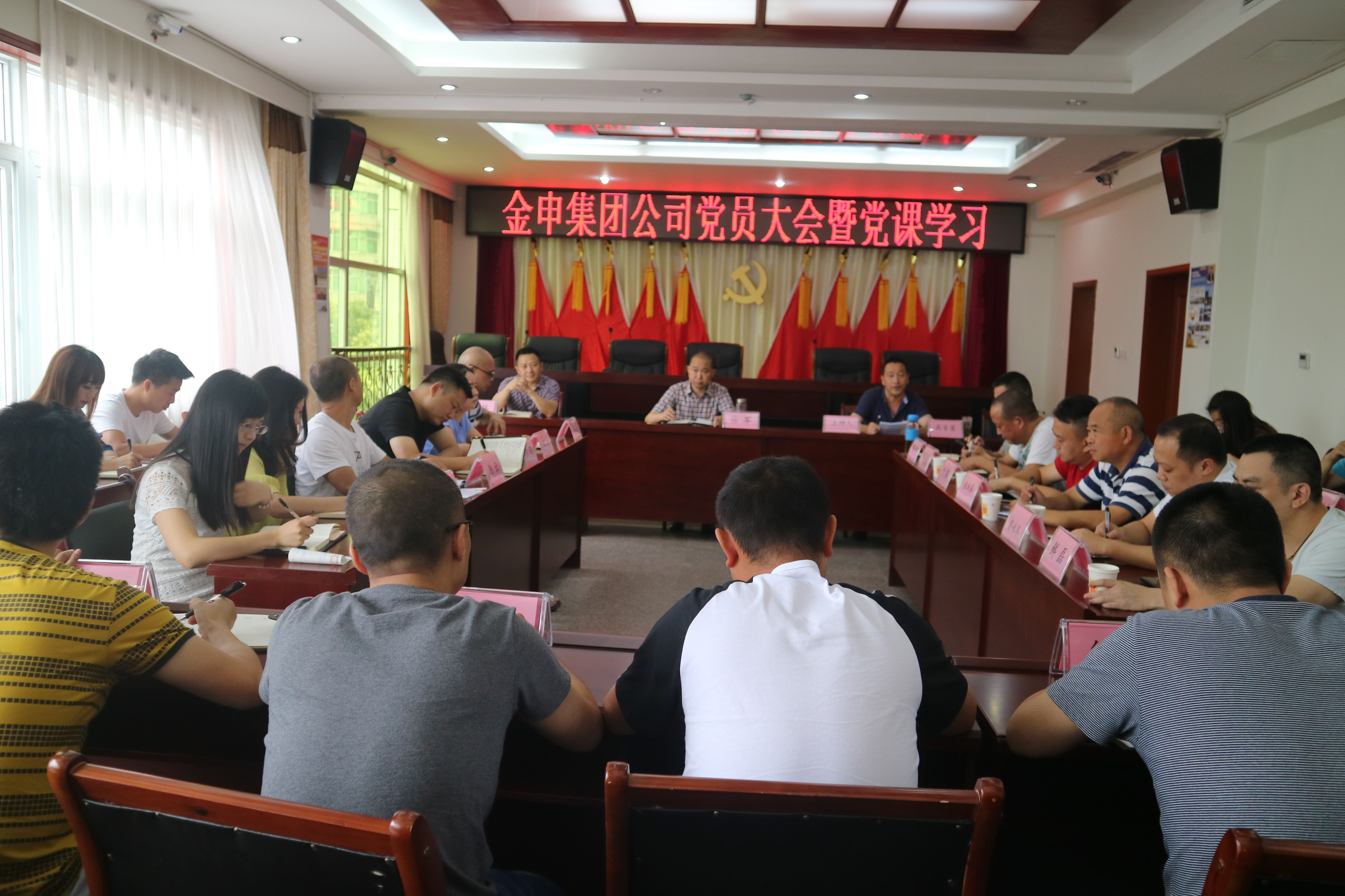 2018年6月11日下午,金申集团公司在公司总部会议室开展本年第二季度主题党课教育活动,公司负责人、全体党员、积极分子共计30余人出席并参加会议。