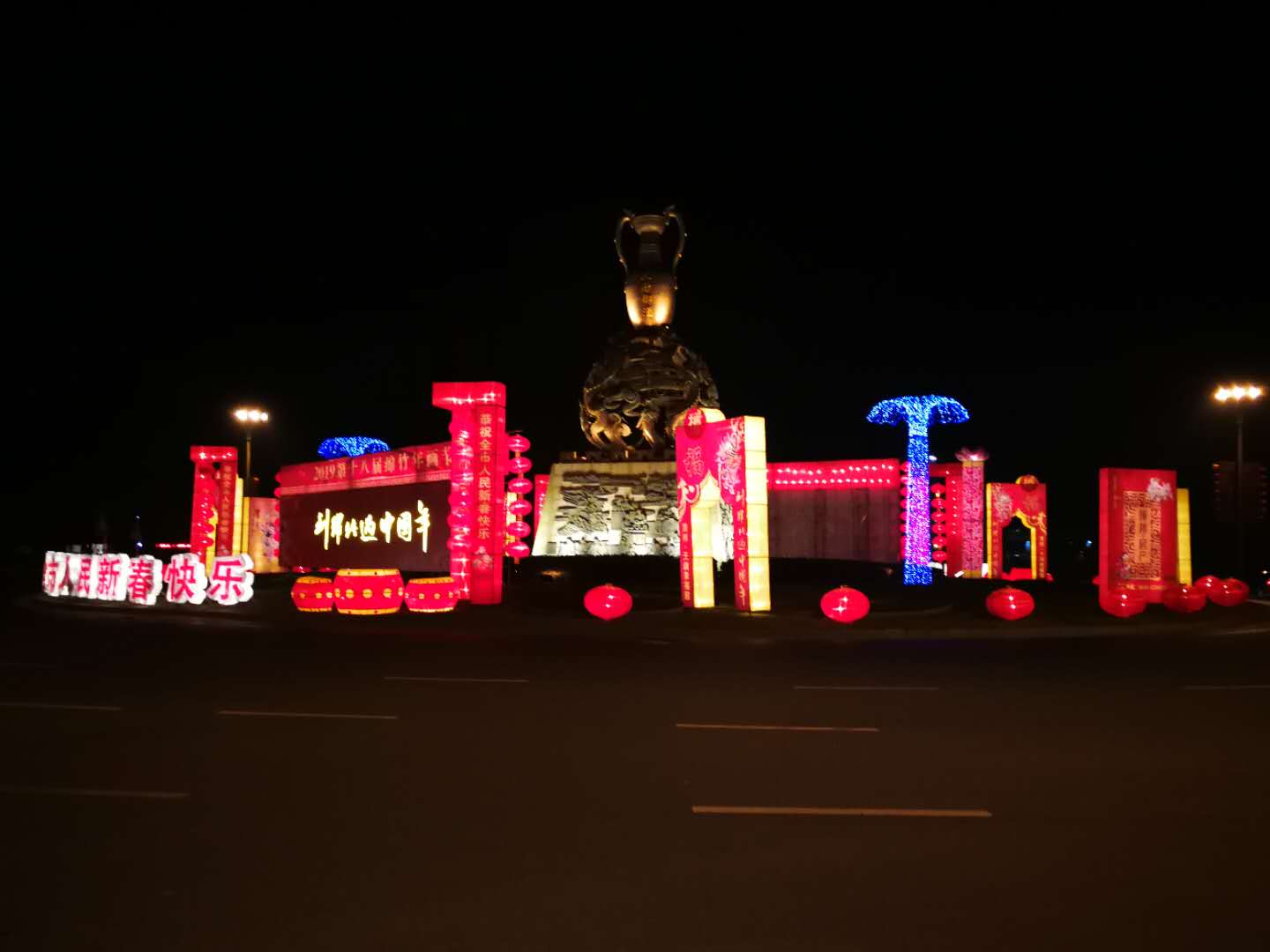 在施工现场我们看到,工人正在有序的施工,规范的穿戴着安全帽、安全绳等安全设备设施,焊接钢架、铺设电线、安装设备,整个施工现场一片火热。现场施工负责人告诉我们,为了尽快完成任务,元旦后就组织工人着手制作,这几天更是加班加点地进行,每天从早上一直到晚上十点左右才收工,确保年画节所有街景布置工作于1月28日前全面完成,在赶进度的同时也做到了文明施工、安全施工。装饰后的绵竹城区将焕然一新,处处洋溢欢乐祥和的节日氛围。