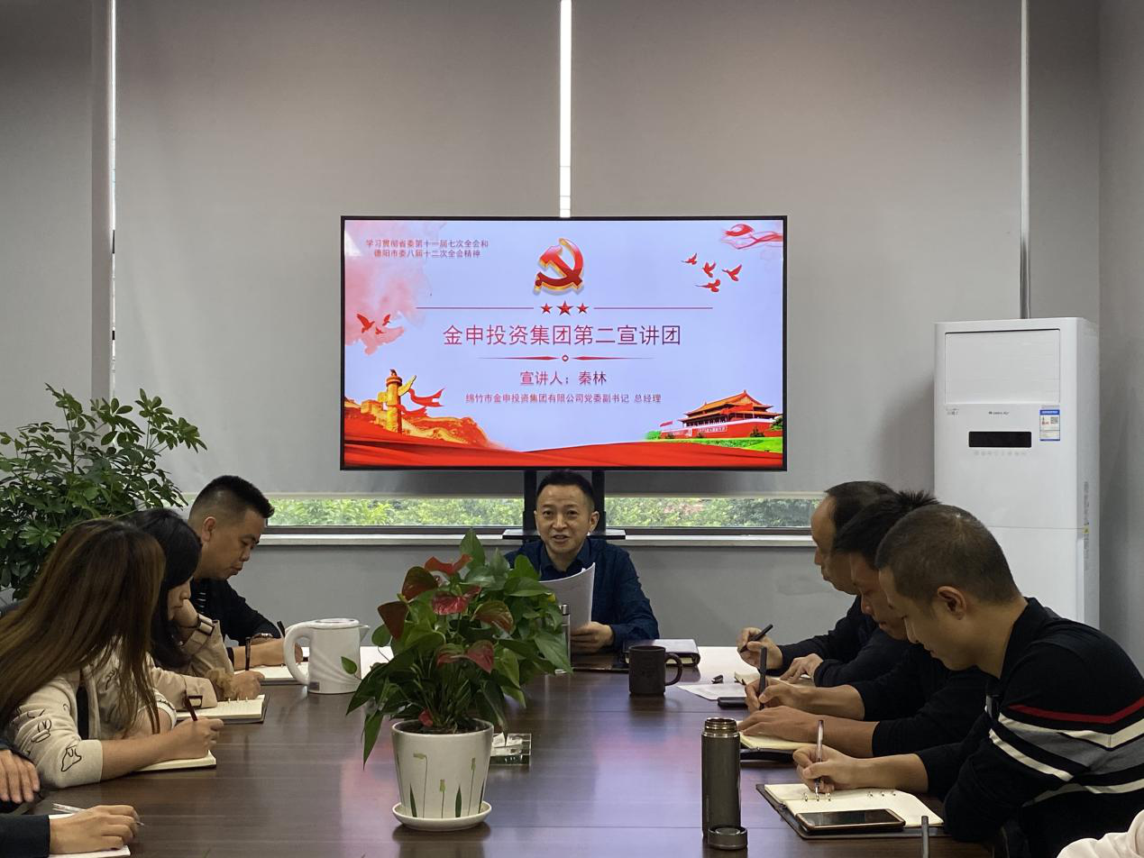 中共绵竹市金申投资集团有限公司委员会按照绵竹市委的统一要求,开展学习贯彻省委十一届七次全会和德阳市委八届十二次全体会议精神宣讲。本次宣讲共组建6支宣讲队伍,由党委领导班子带队分别到6个党支部进行宣讲,做到公司党员全覆盖。