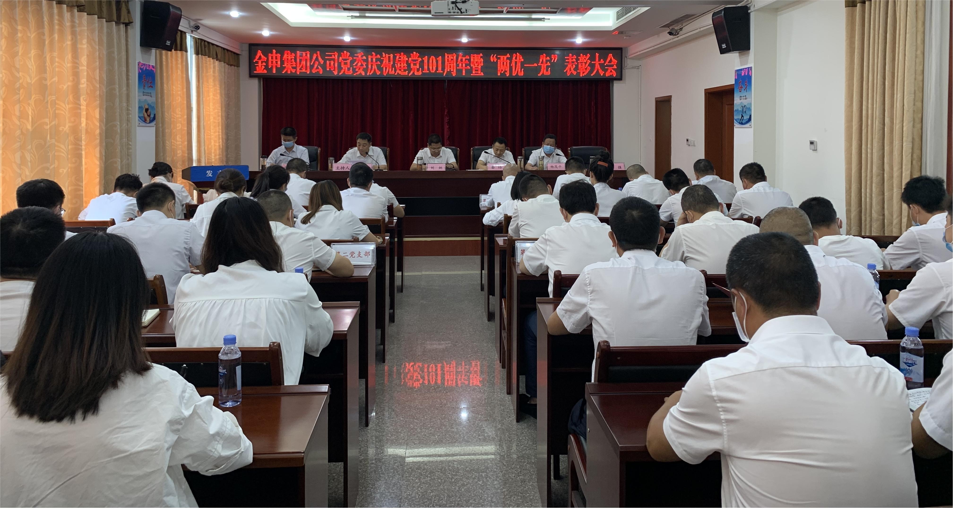 6月30日下午,绵竹市金申投资集团有限公司召开庆祝建党101周年暨“两优一先”表彰大会。集团公司全体党员共计60余人参会。
