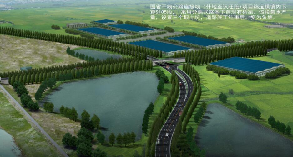 起于成绵高速复线什地互通连接线与绵罗路交叉处,从什地镇沿着北方走到河边,然后沿绵远河右岸布设,并在穿山堰附近跨越绵远河,之后一直沿着绵远河左岸前行,经过绵远、拱星、汉旺,终点为绵茂公路与 Y008 乡道交叉处(汉旺绵远河大桥清平岸)。路线全长约19.8km,路基宽度14m,二级公路,沥青砼路面,含新建什地绵远河大桥。建设内容含路基、路面、桥梁、交安工程;拆迁、调地等。项目总投资约1.75亿元。