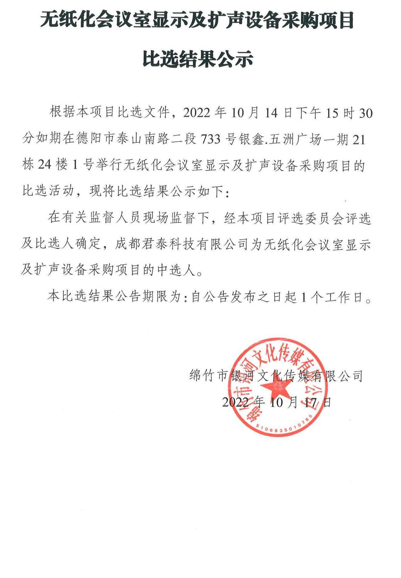无纸化会议室显示及扩声设备采购项目比选结果公示