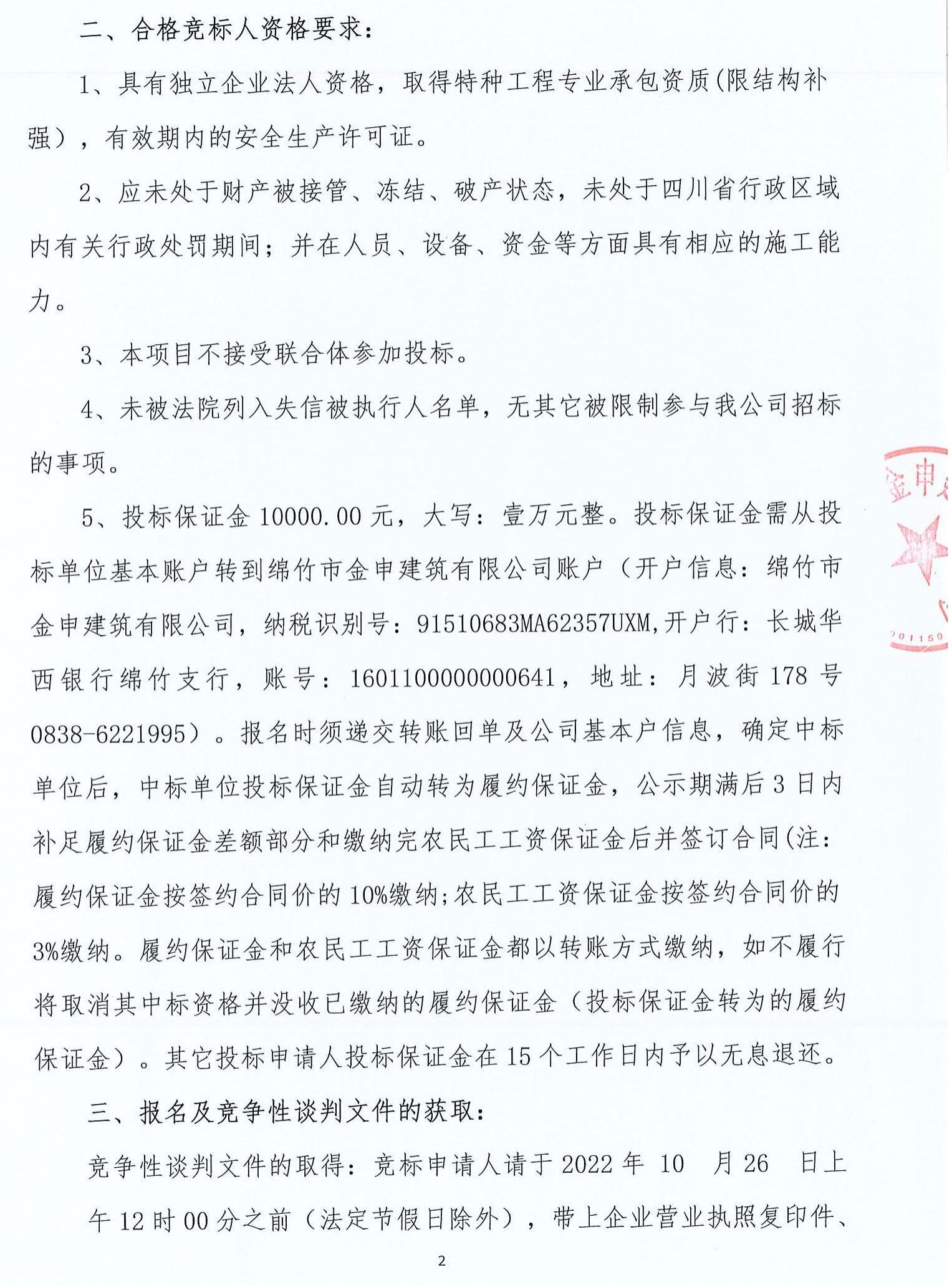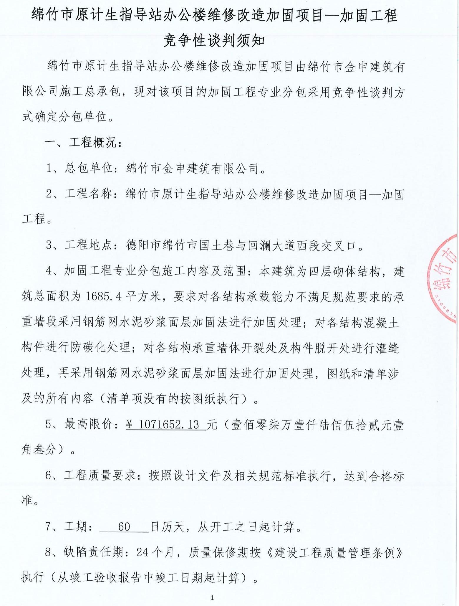 绵竹原计生指导站办公楼维修改造加固项目竞争性谈判须知