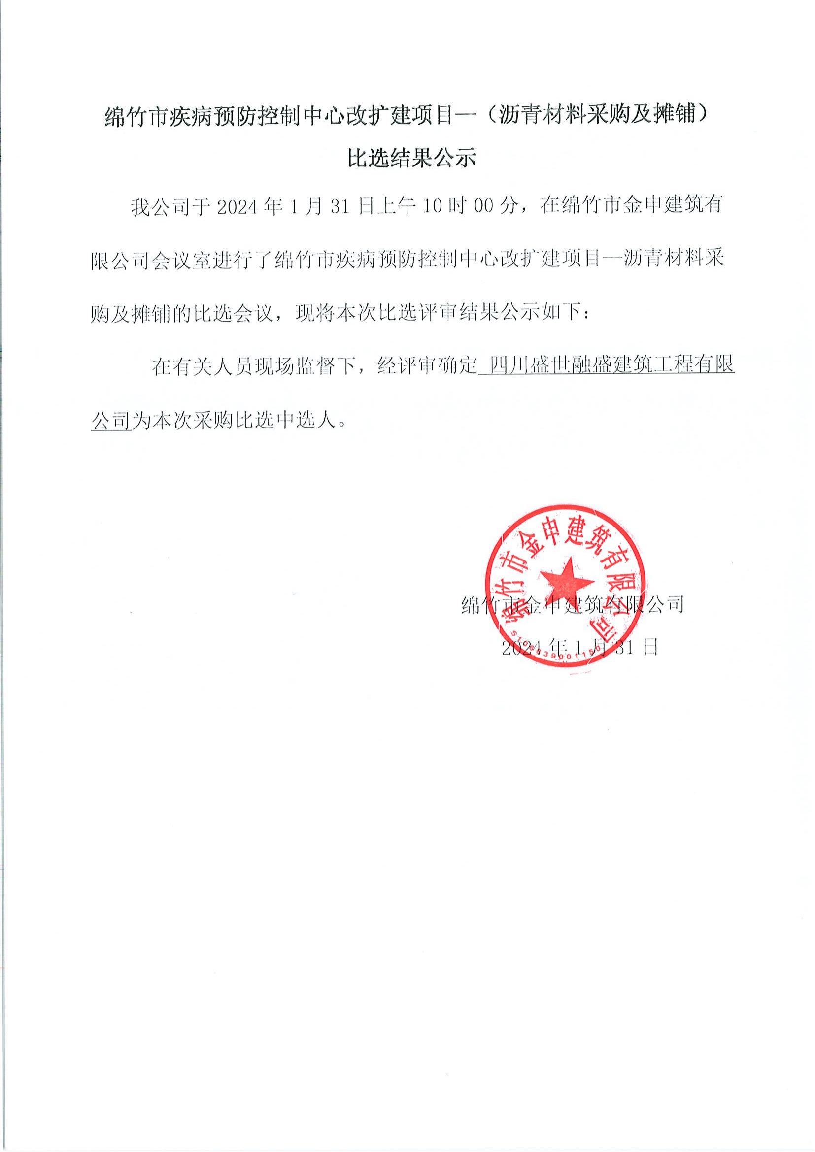 绵竹疾病预防控制中心改扩建项目沥青材料比选结果公示