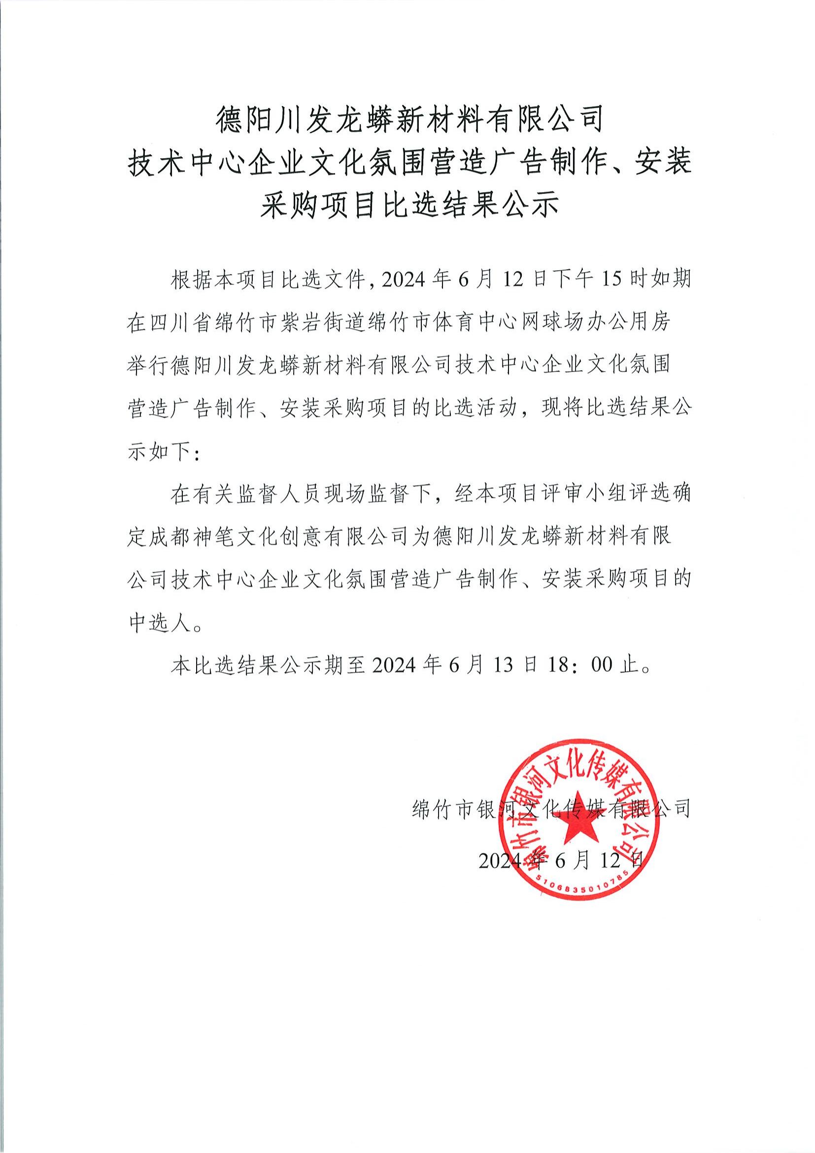 川发龙蟒新材料公司企业文化氛围项目比选结果公示