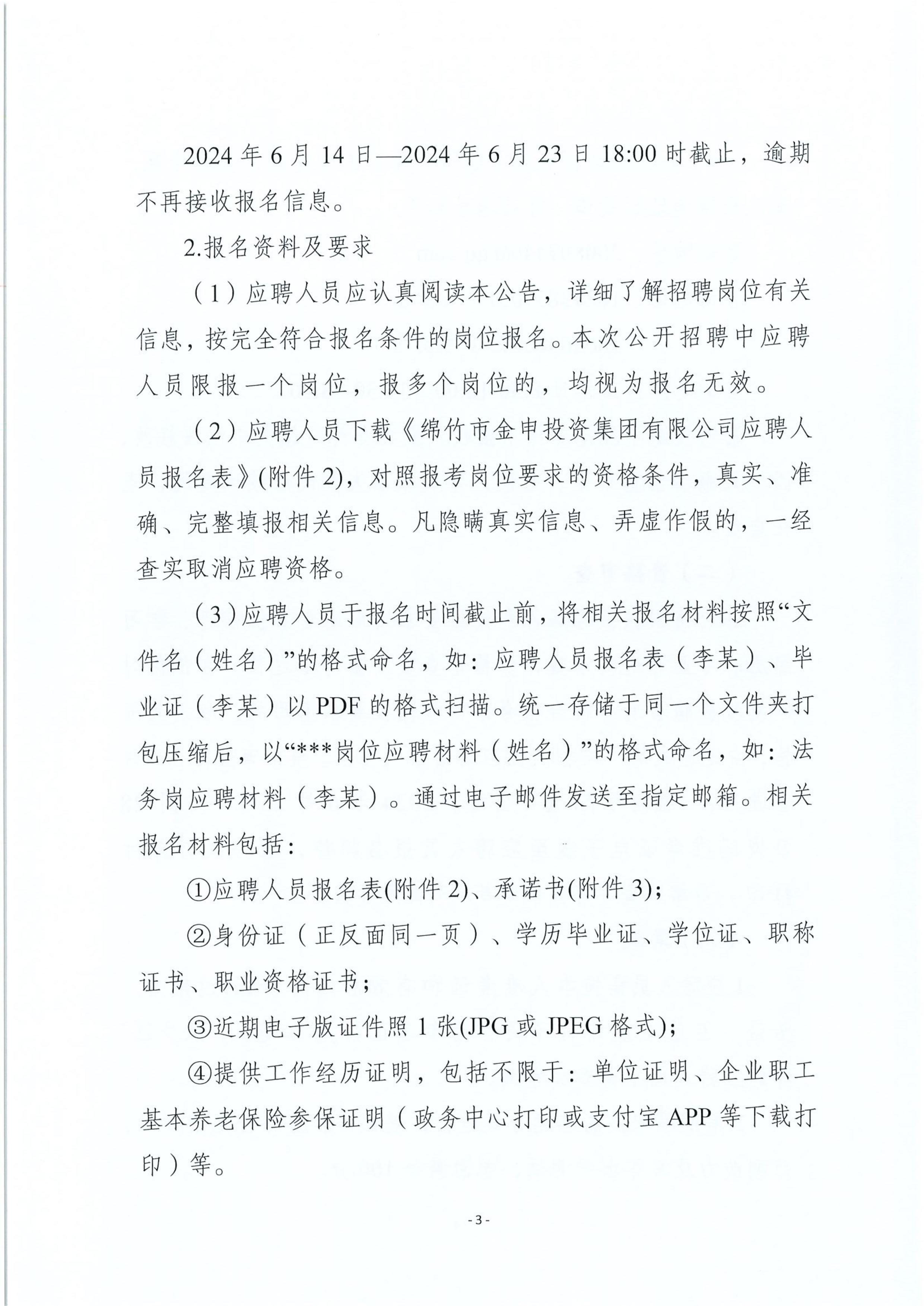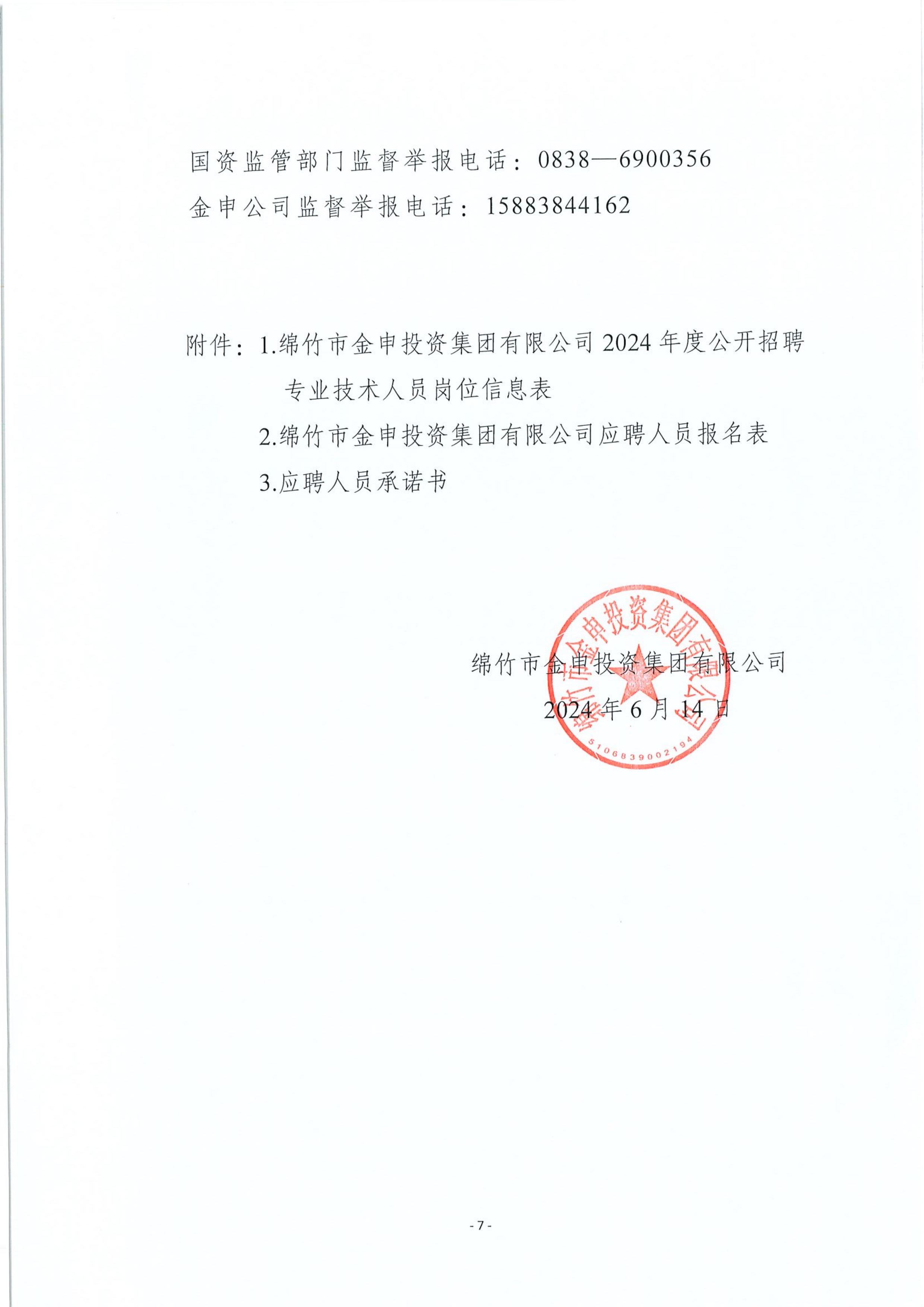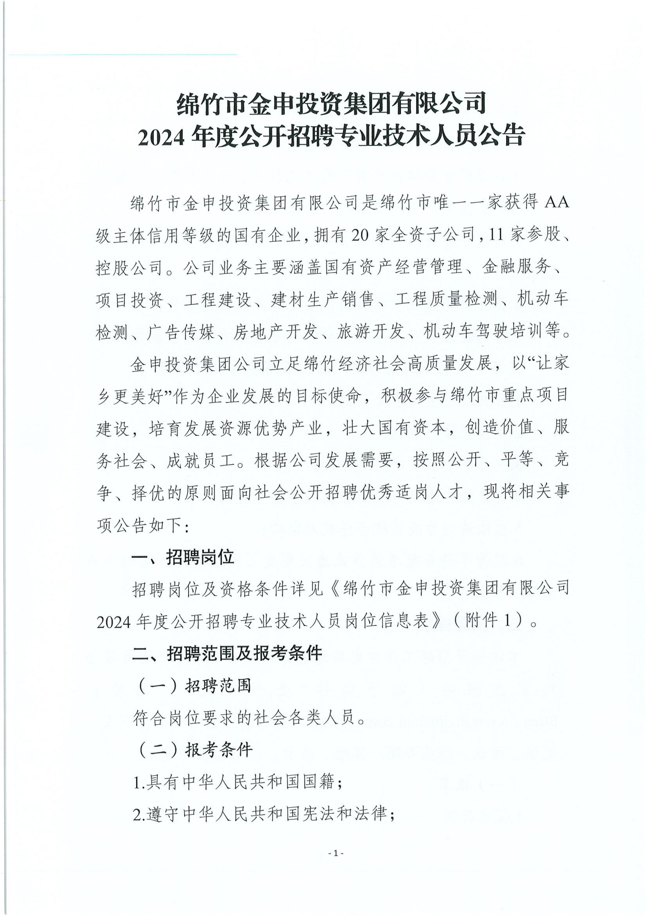附件1绵竹市金申投资集团有限公司2024年度公开招聘专业技术人员岗位信表