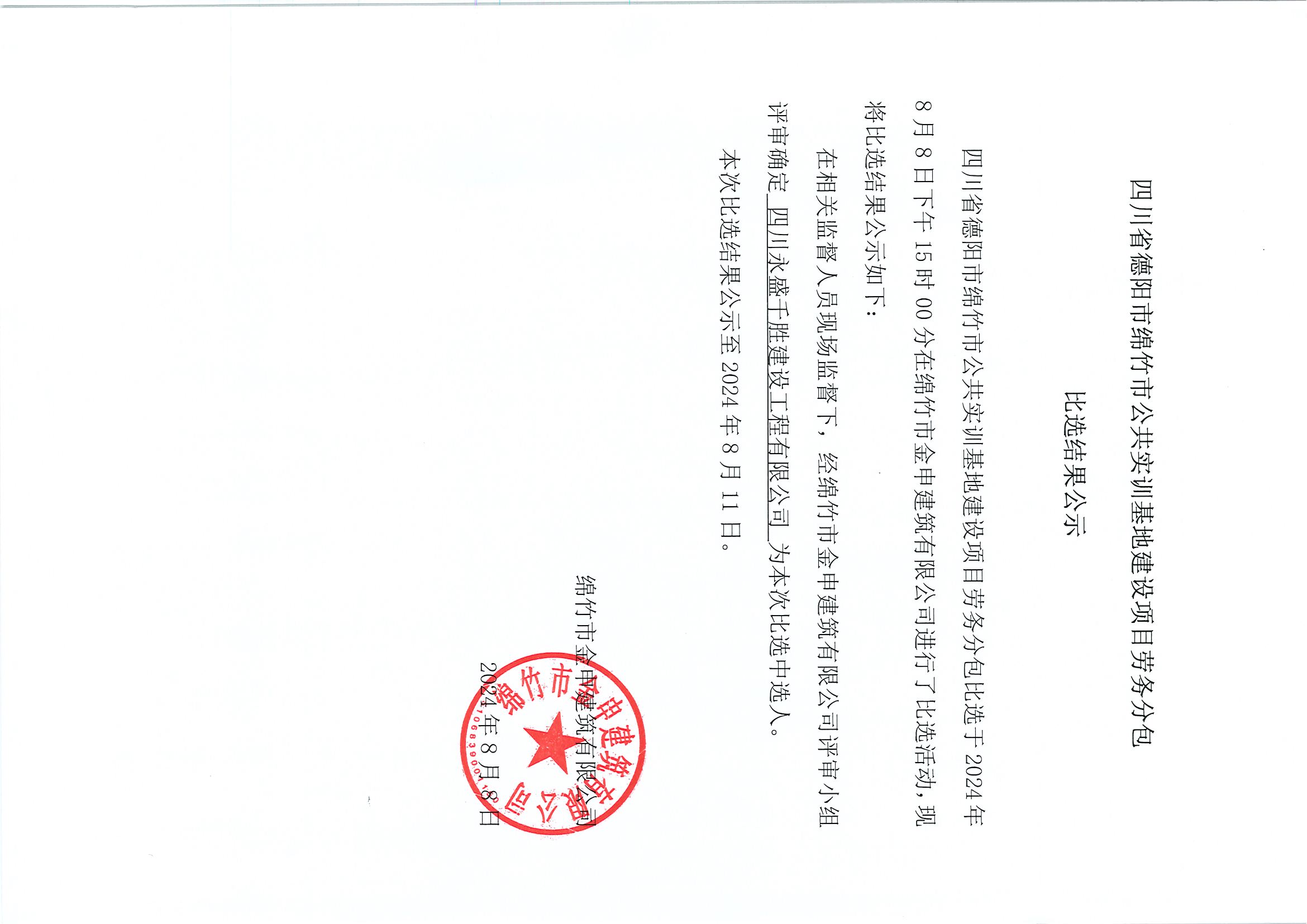 绵竹市公共实训基地建设项目劳务分包比选结果公示