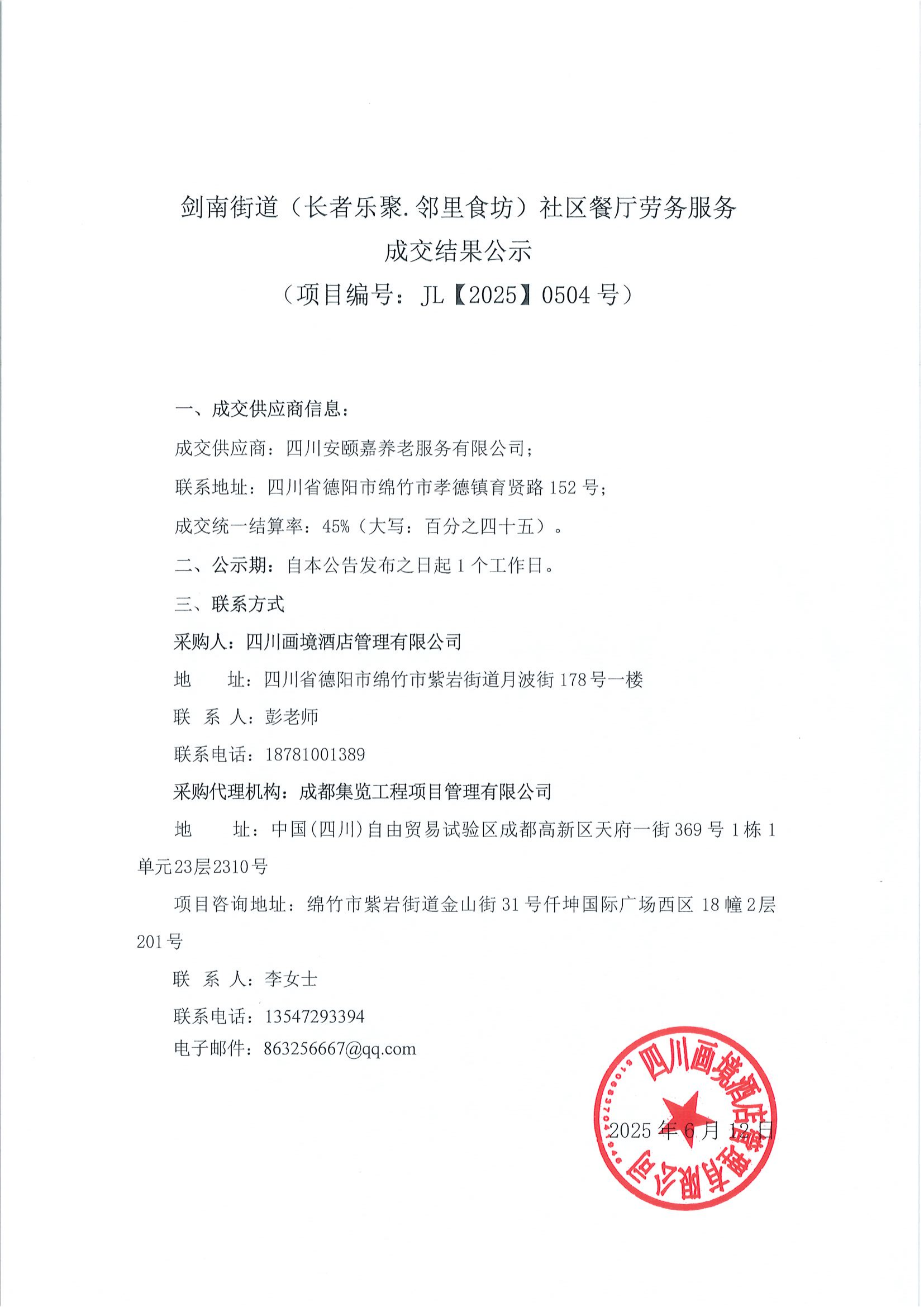 长者乐聚.邻里食坊社区餐厅劳务服务成交结果公示