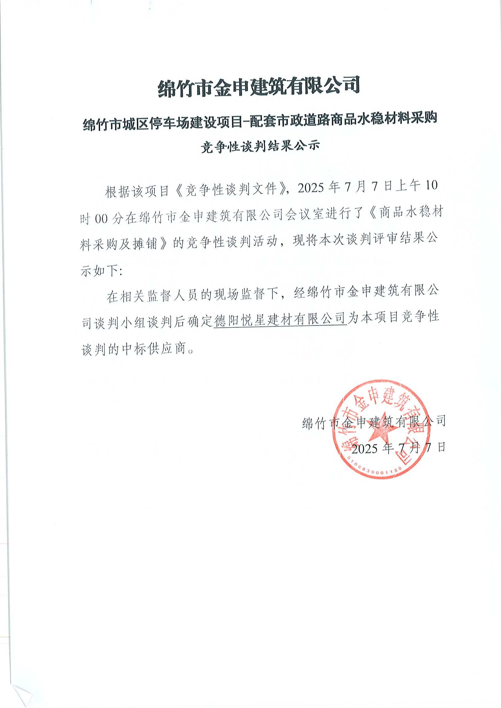 城区停车场建设项目(商品水稳)竞争性谈判结果公示