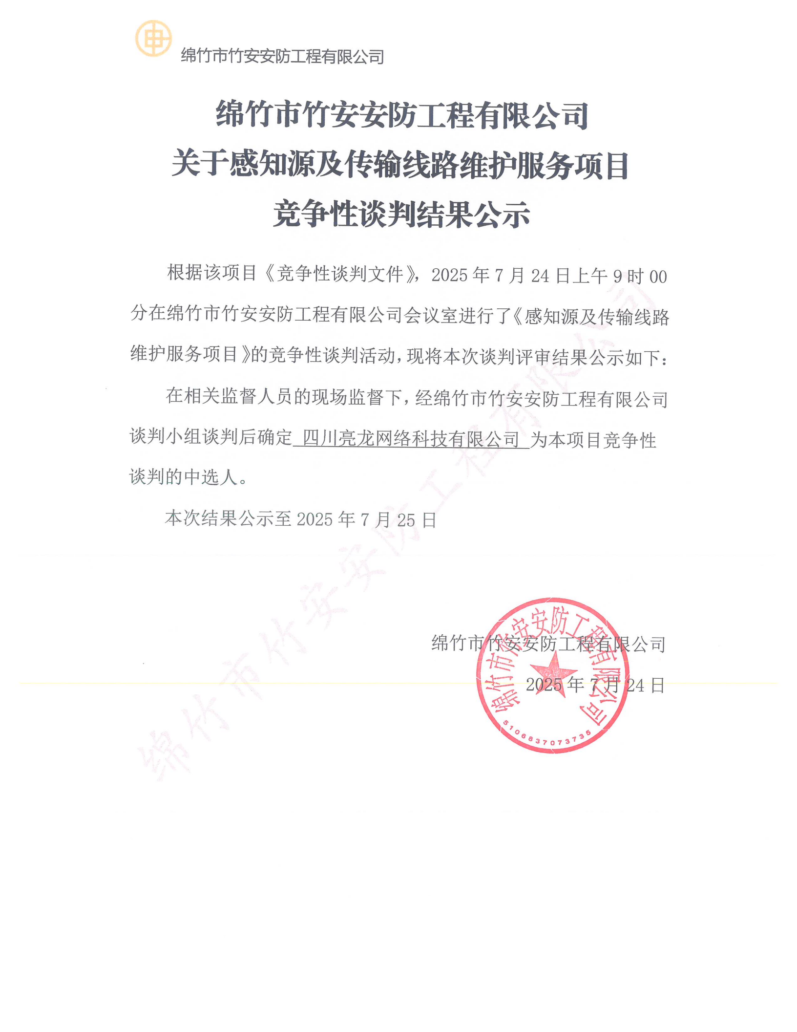 感知源及传输线路维护服务项目竞争性谈判结果公示