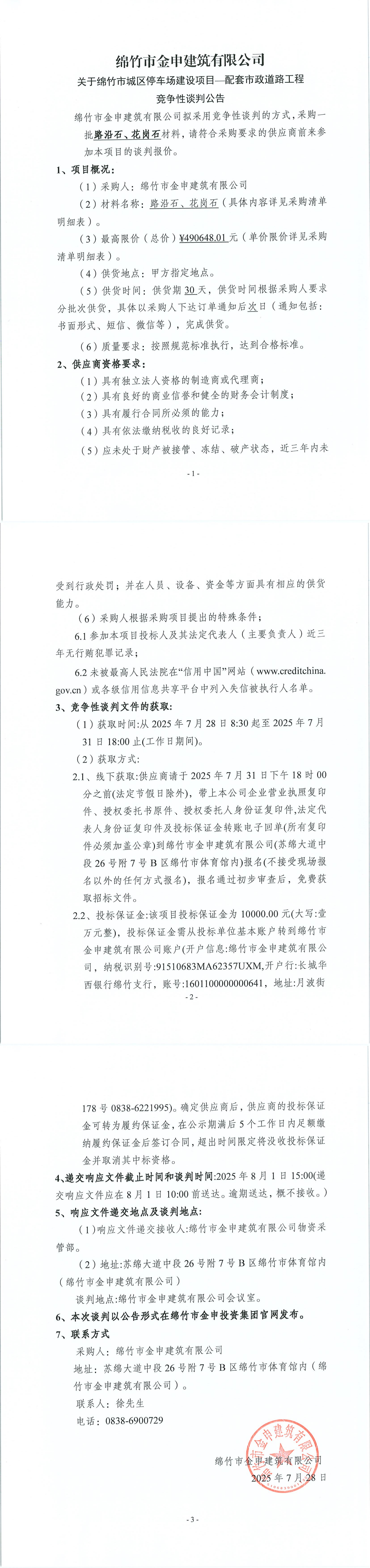 城区停车场项目-常兴街(路沿石、花岗石)竞争性谈判公告