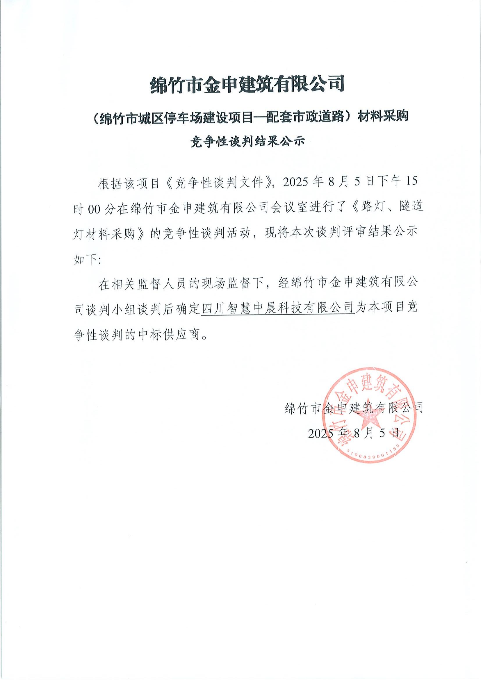城区停车场-常兴街(路灯、隧道灯)招标结果公示