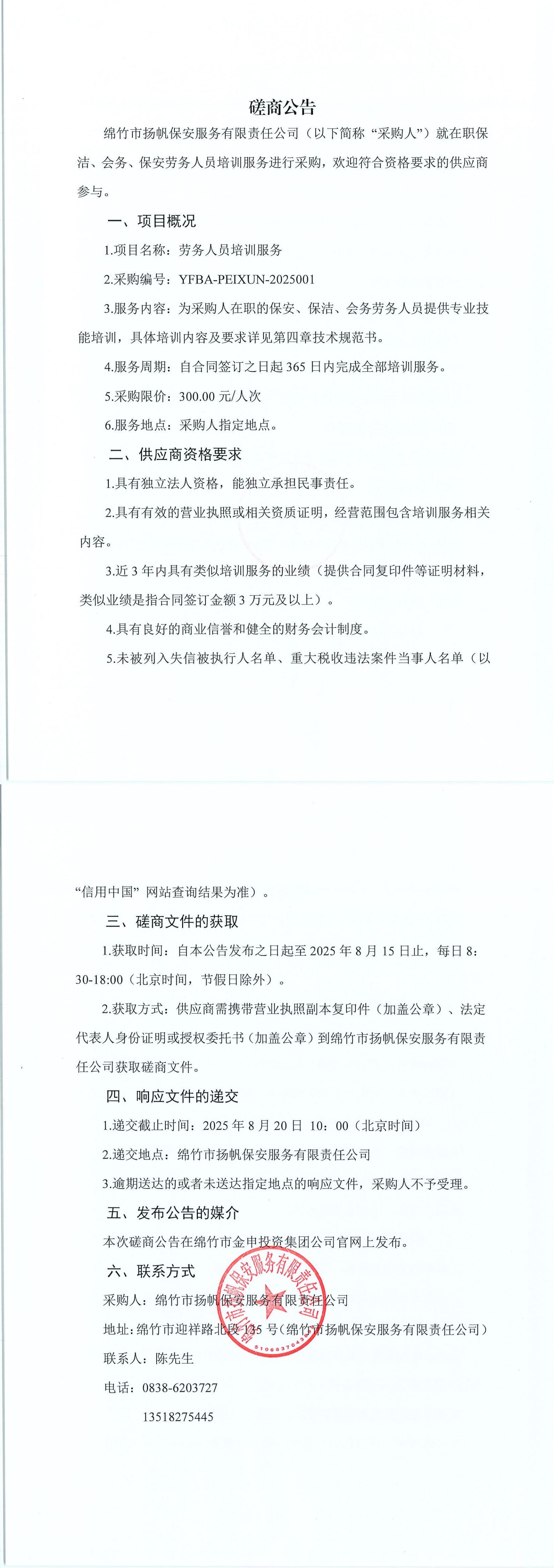 劳务人员培训服务采购磋商公告