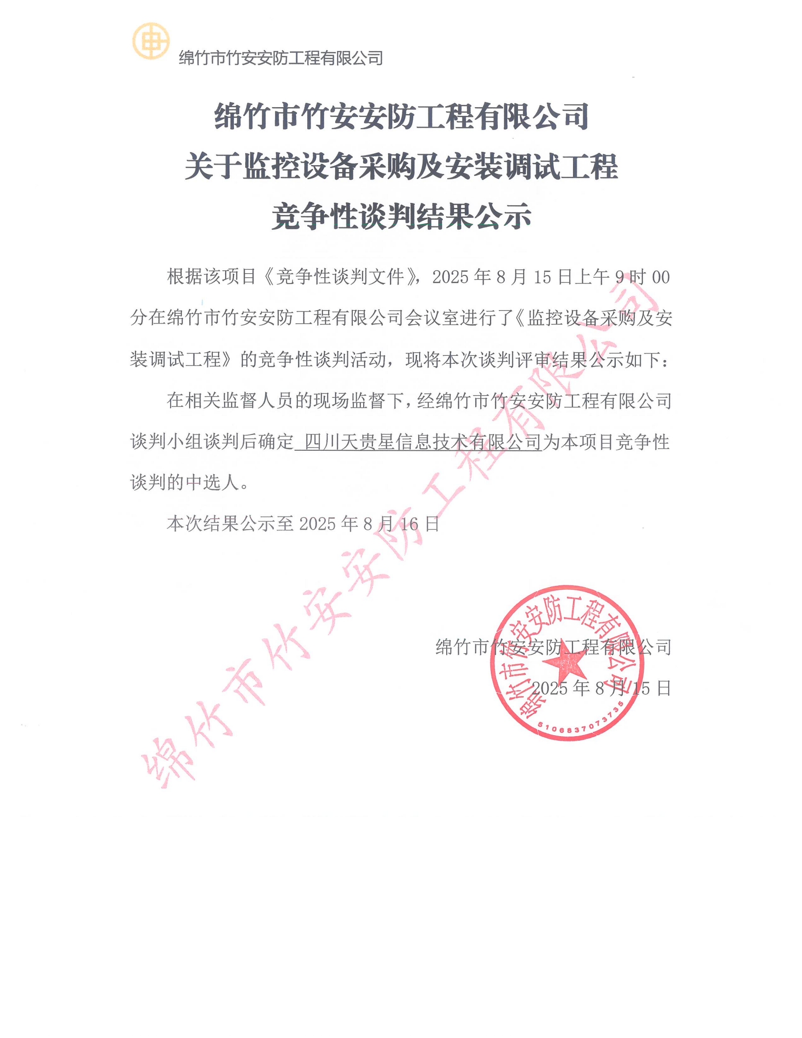监控设备采购及安装调试工程竞争性谈判结果公示