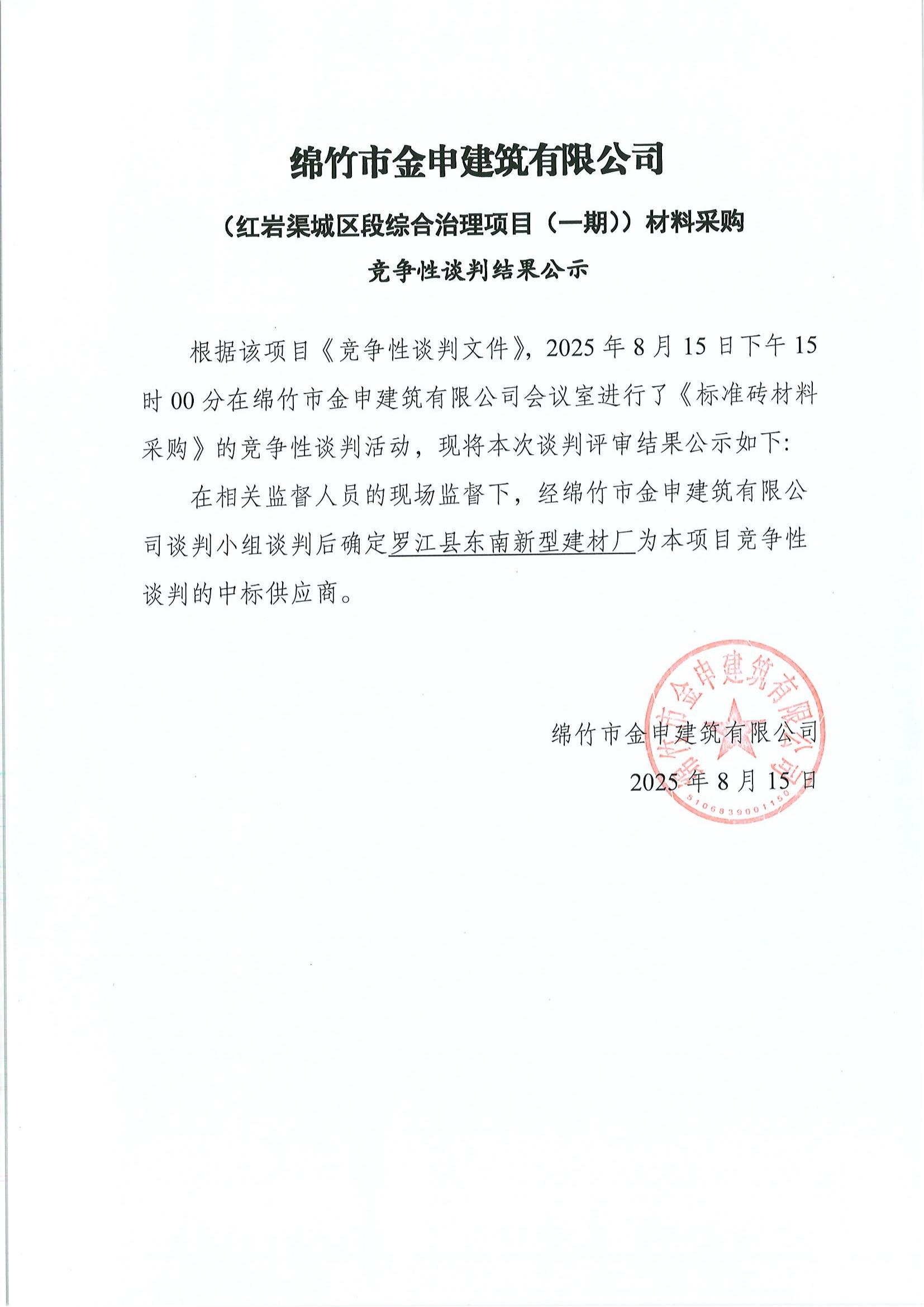 红岩渠一期(标准砖)竞争性谈判结果公示