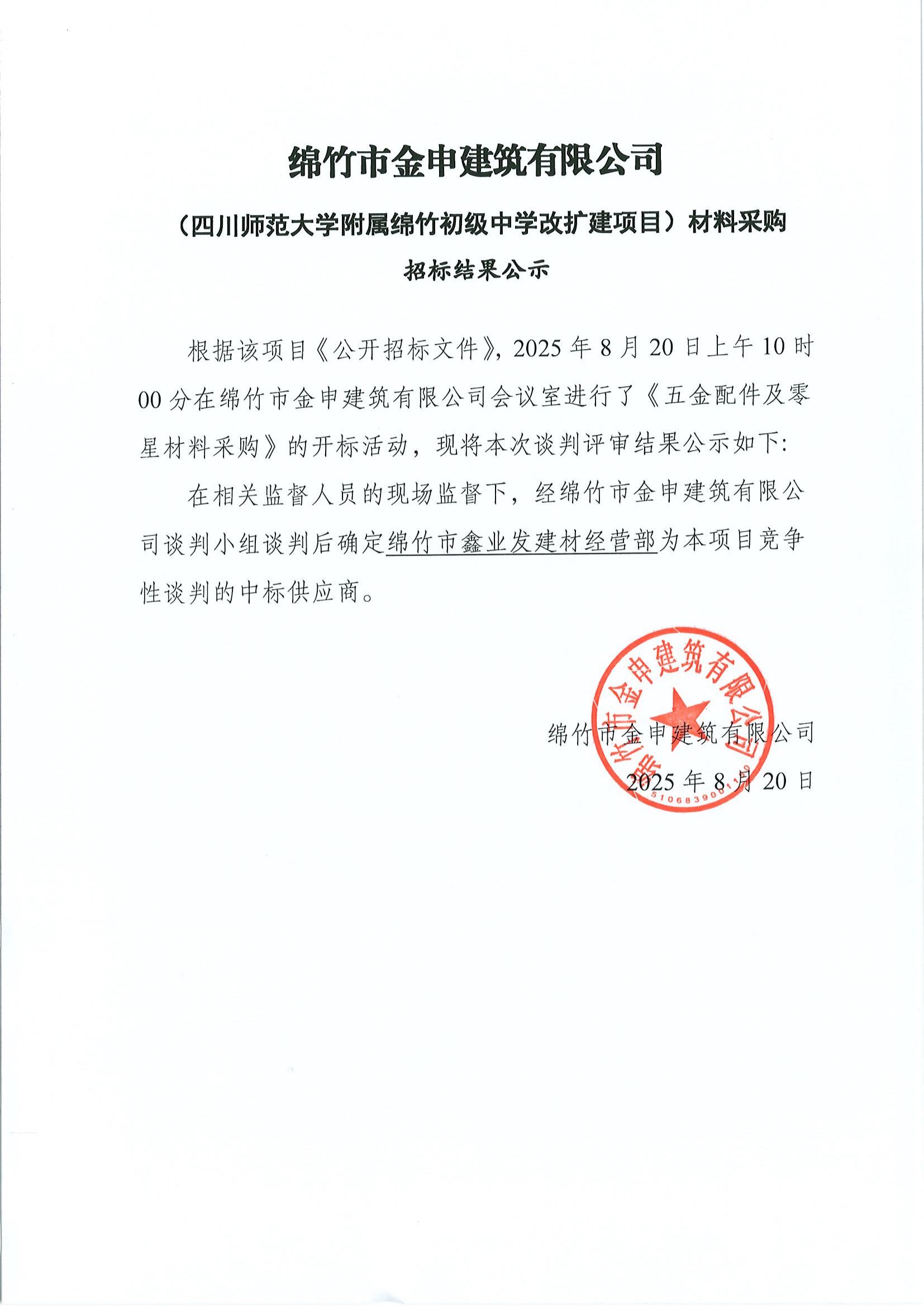 川师附中(五金材料)材料采购竞争性谈判结果公示
