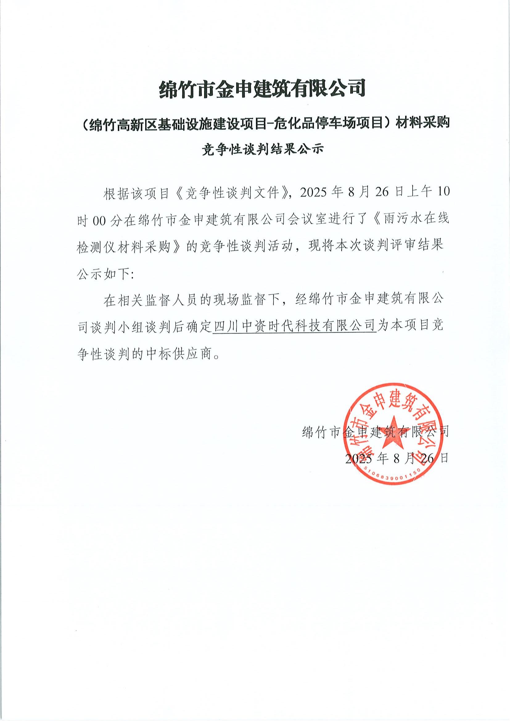 危化品停车场(雨污水在线检测仪)竞争性谈判结果公示