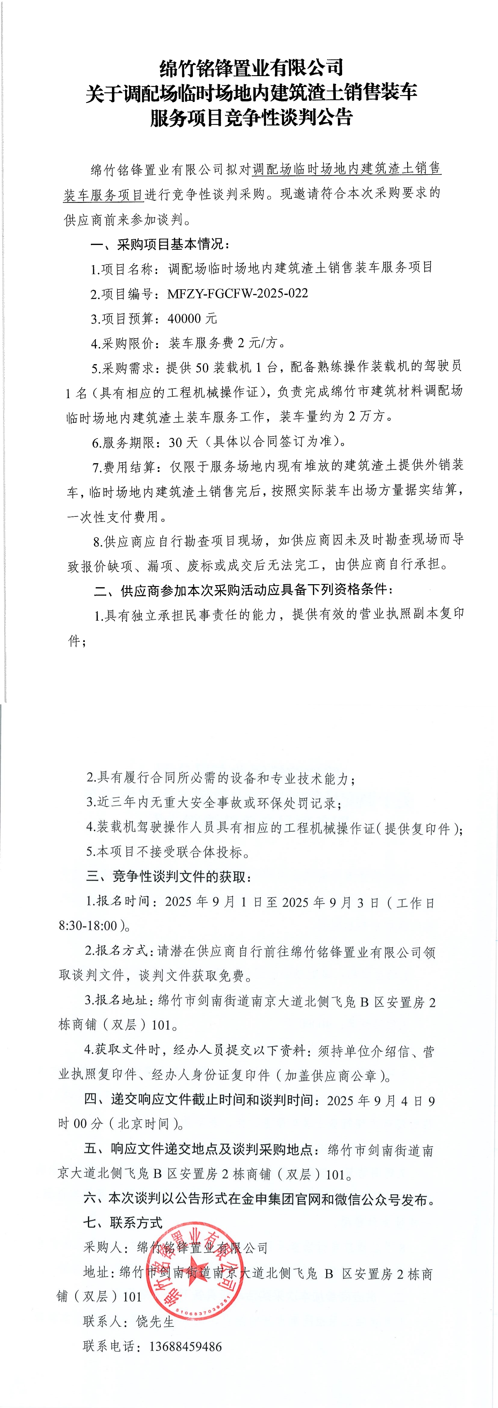 调配场临时场地内建筑渣土销售装车服务项目谈判公告