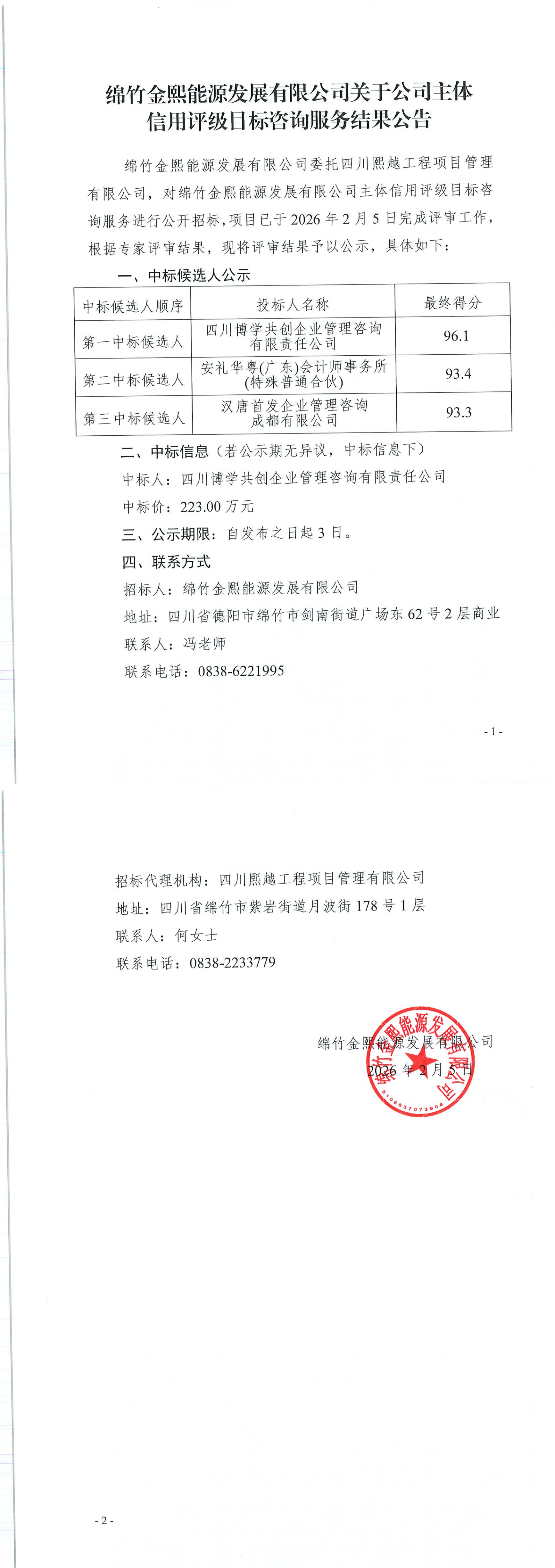 金熙能源关于公司主体信用评级目标咨询服务结果公告