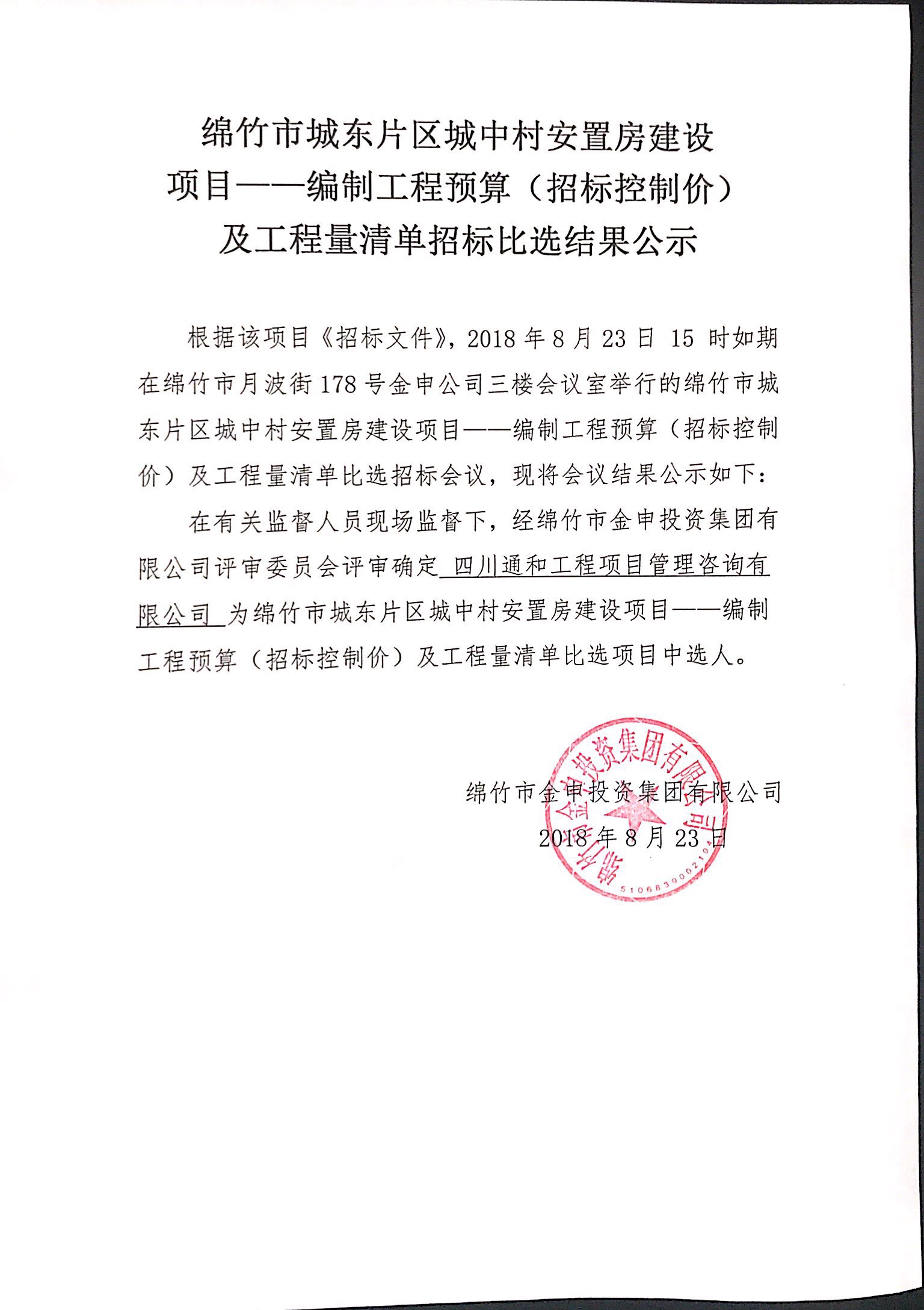 市城东安置房项目编制工程预算及工程量清单比选结果公示
