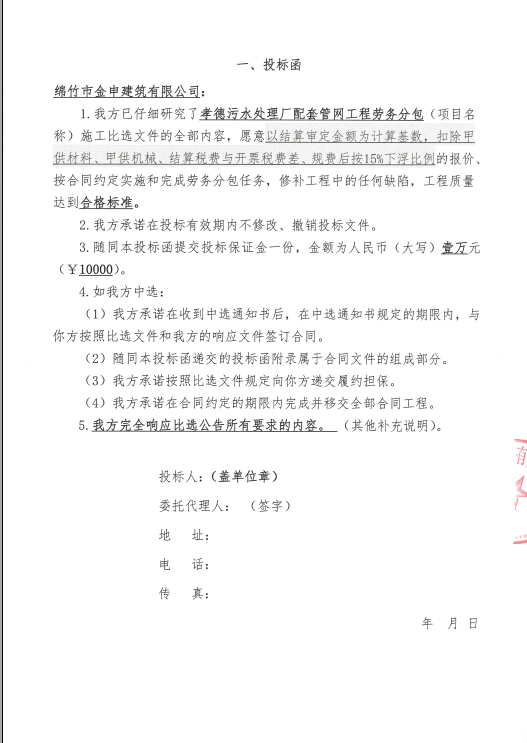 孝德污水处理厂配套管网工程劳务分包比选公告