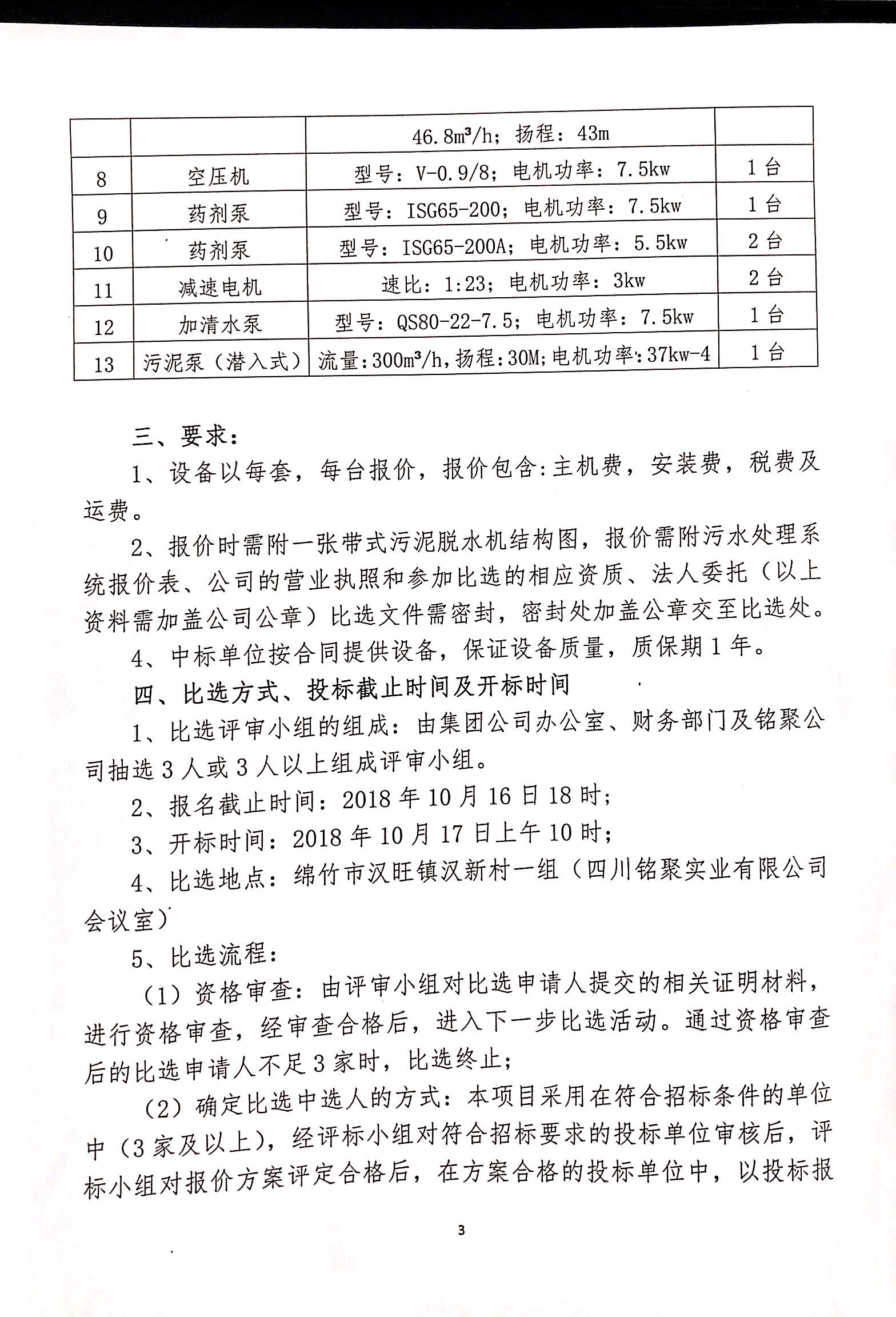 铭聚公司二期污水处理池环保设备压滤机招标比选公告