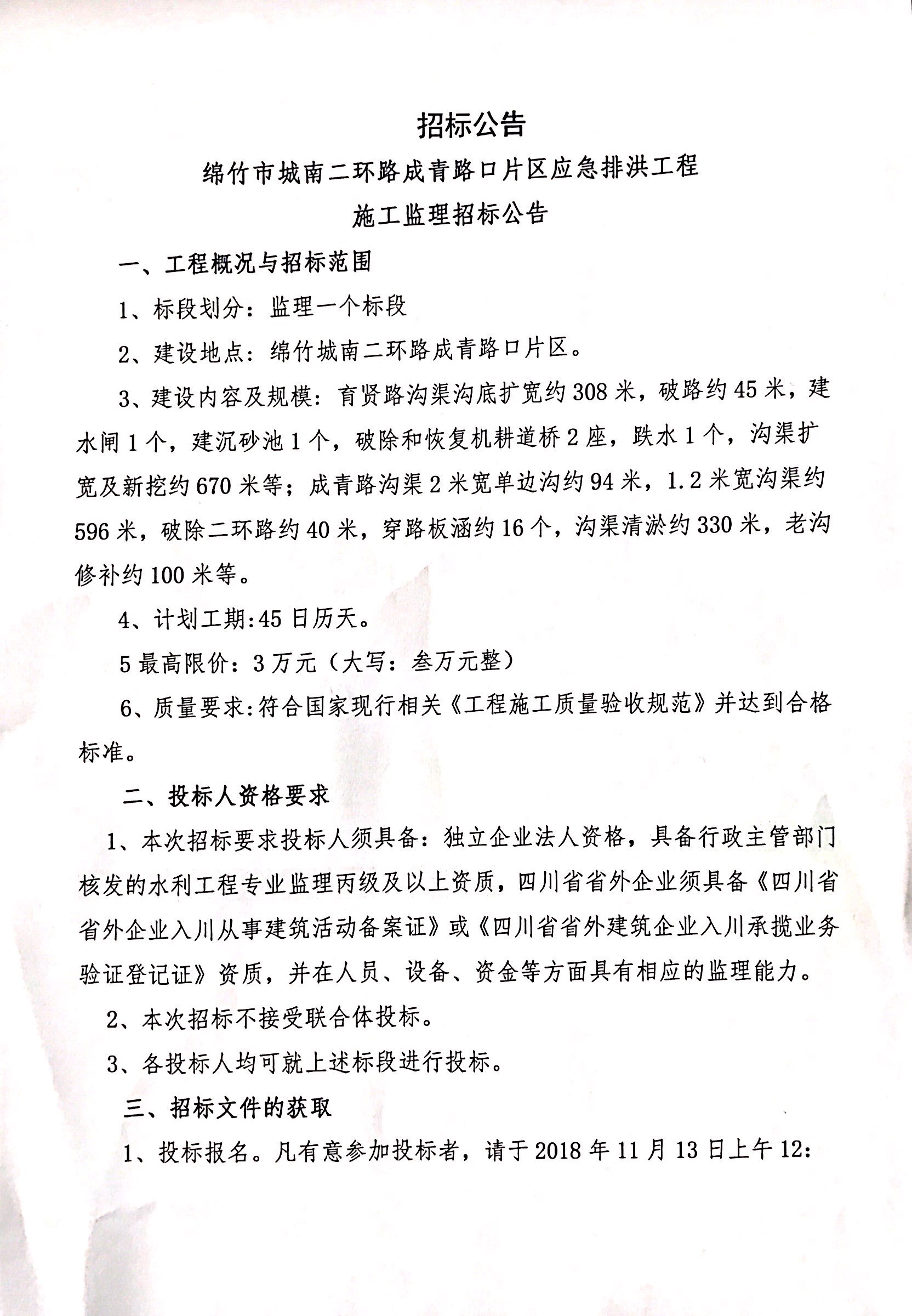 市城南二环路成青路口片区应急排洪工程施工监理招标公告