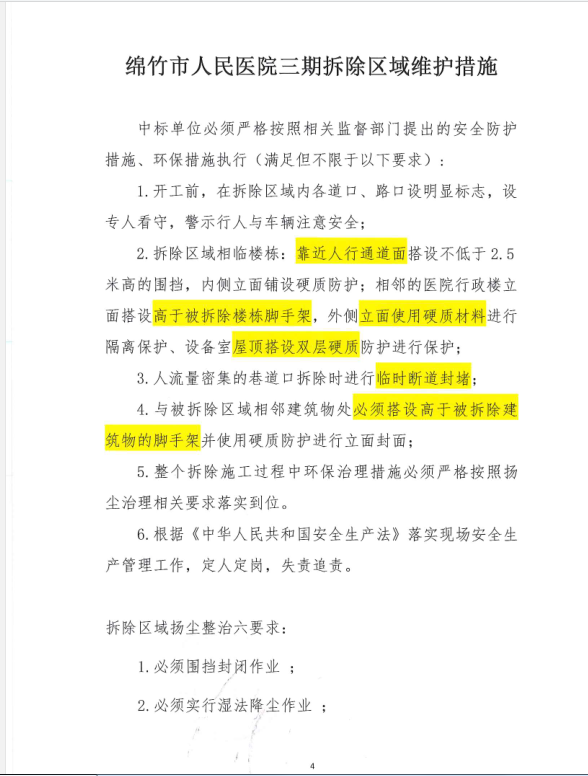 绵竹市人民医院三期拆除工程项目施工比选公告