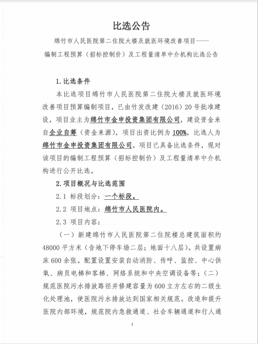 市医院第二住院楼编制工程预算等中介机构比选公告