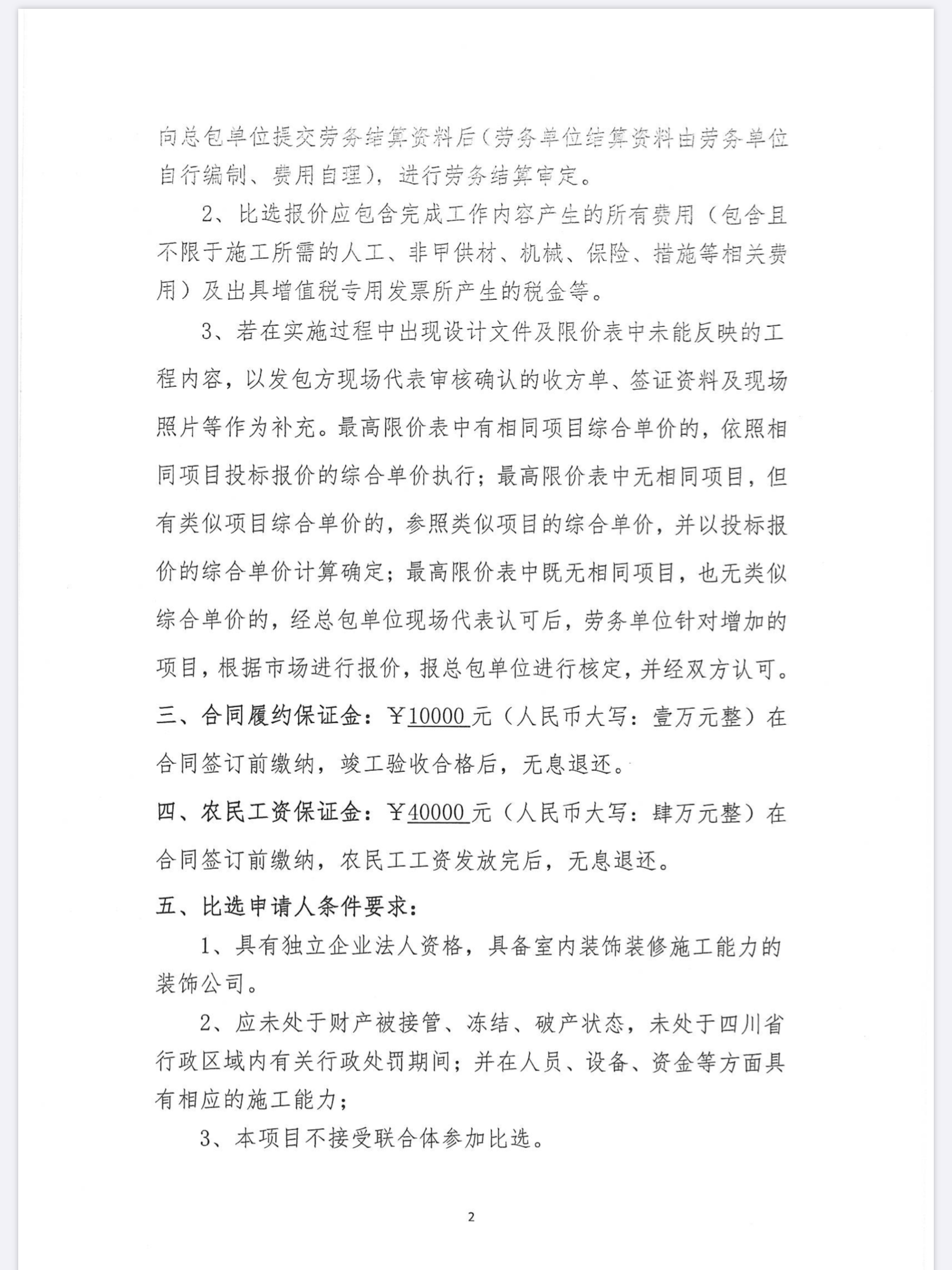 市人才公寓建设及金申卫生间改造工程劳务分包比选公告