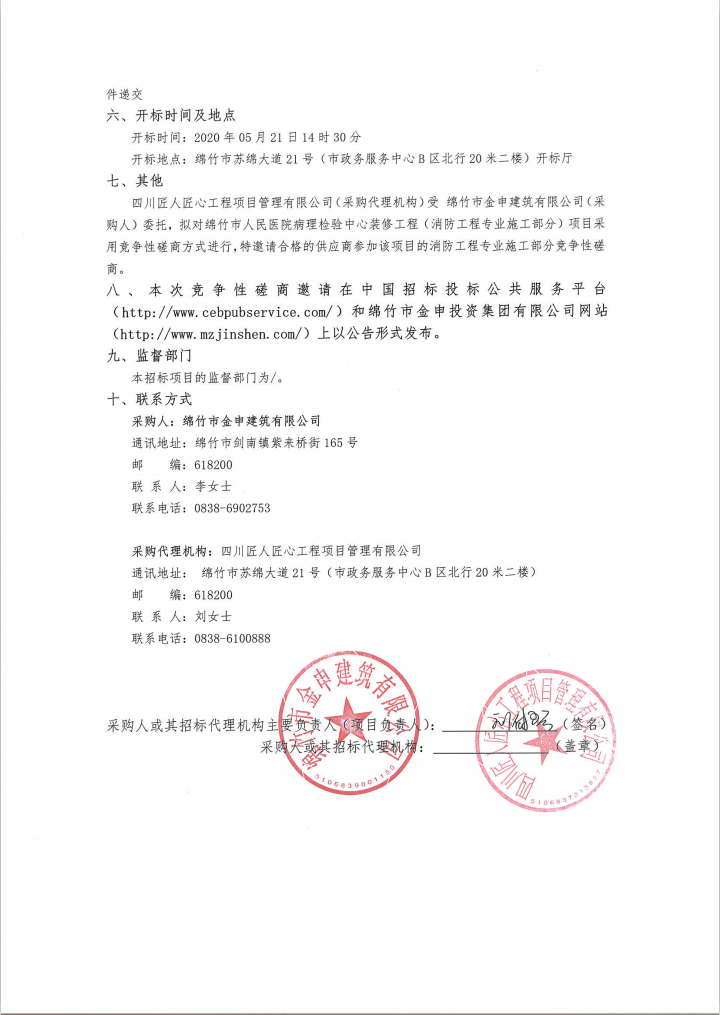 人民医院病理检验中心(消防工程)项目竞争性磋商邀请公告