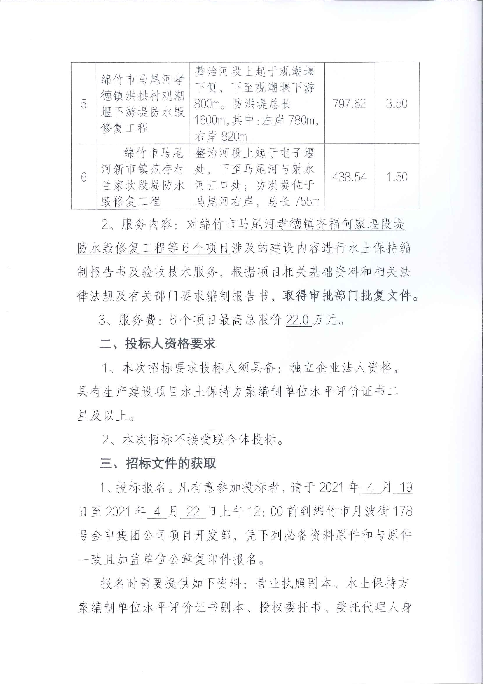马尾河何家堰段堤防水毁等6个项目水保编制服务招标公告