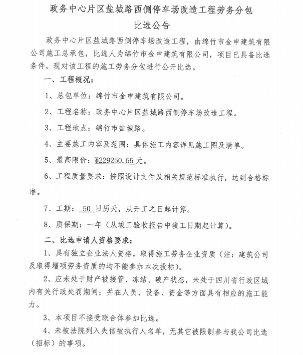 政务中心片区盐城路西侧停车场改造工程比选公告