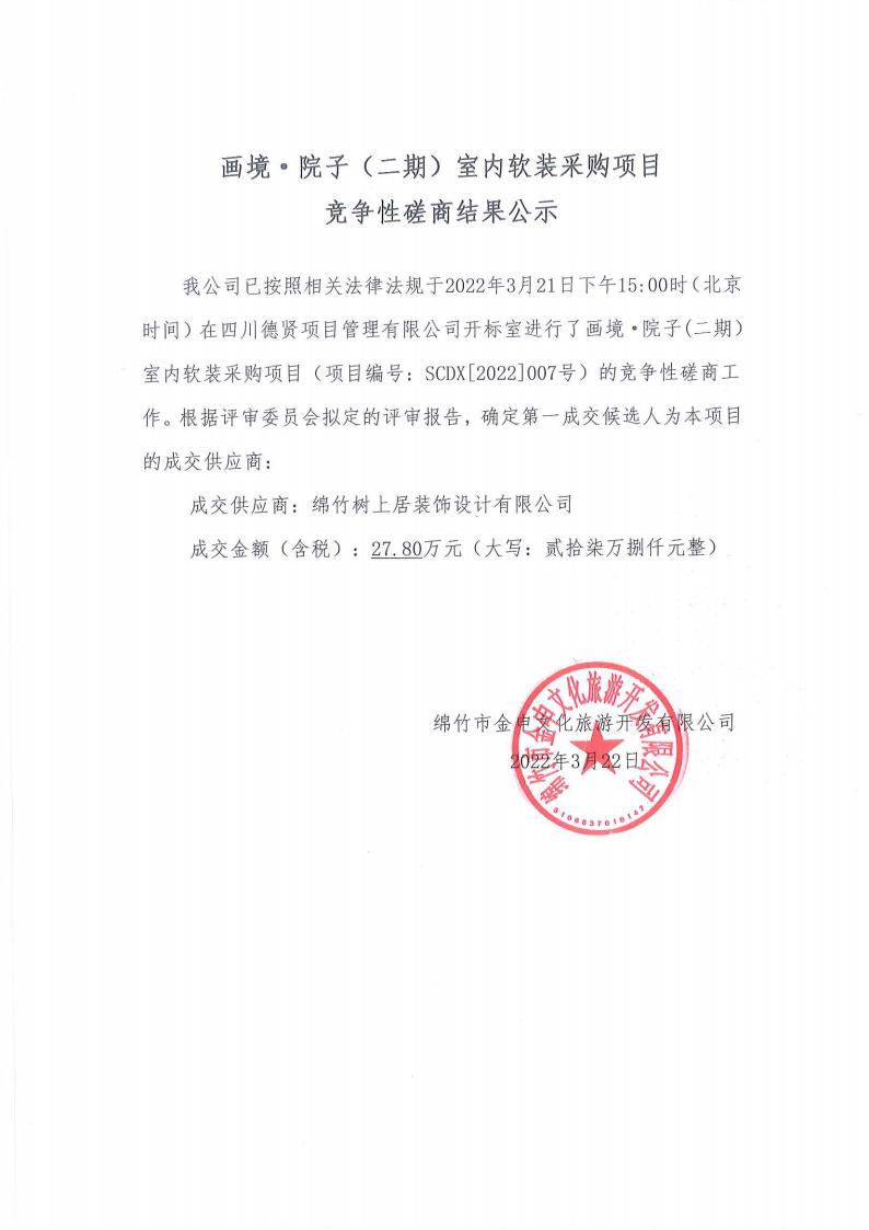 画境·院子(二期)室内软装采购项目竞争性磋商结果公示