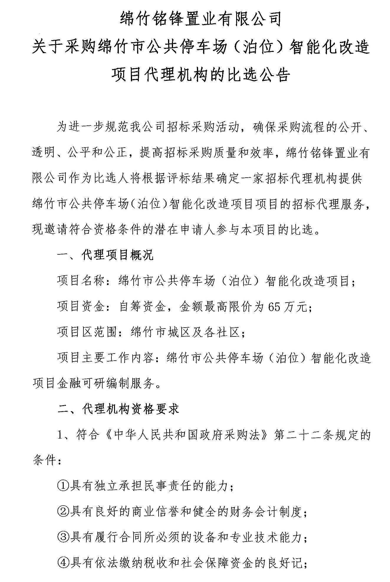 绵竹市公共停车场(泊位)智能改造项目代理机构比选公告