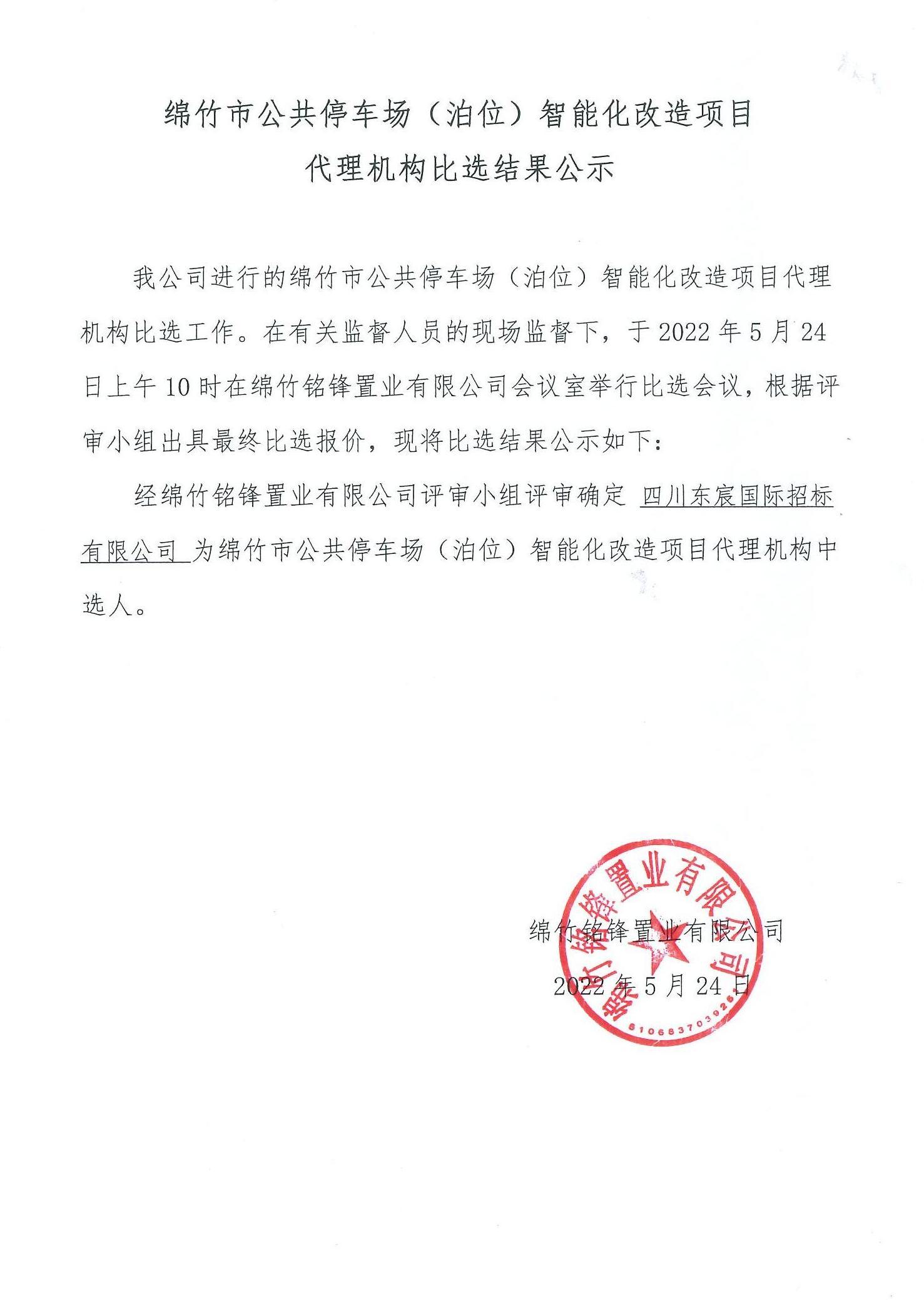 绵竹市公共停车场(泊位)智能改造代理机构比选结果公示