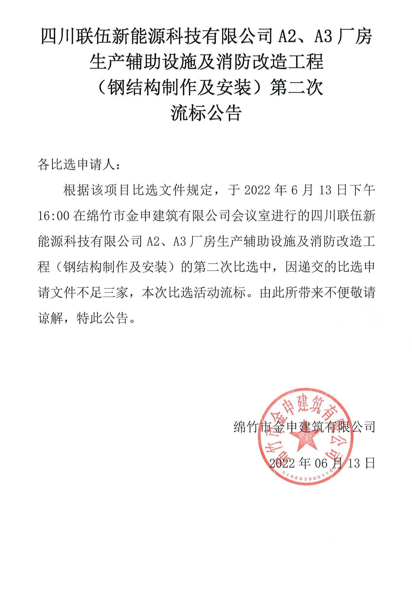 新能源公司改造工程(钢结构制作与安装)第二次流标公告