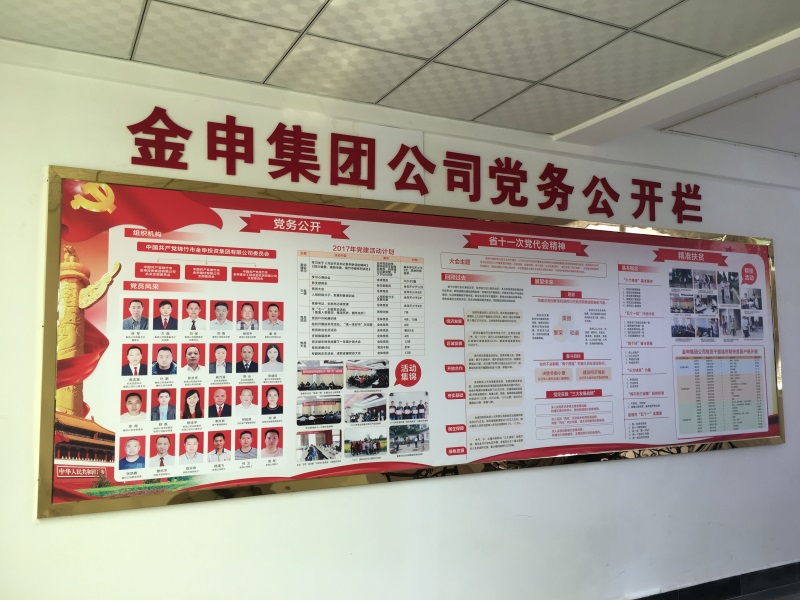 6月21日,簇新的党务宣传栏被安装到金申集团公司办公大楼,这是金申集团公司牢牢把握党对国有企业绝对领导的政治要求,全面加强党建工作的具体体现。金申集团公司党委高度重视党建工作,定期召开会议研究如何加强公司的党建工作。此次安装的党务公开栏设置了党务公开、省十一次党代会精神、精准扶贫等栏目,内容贴近职工群众,语言朴实无华,公示信息完整,受到企业党组织和职工群众的热烈欢迎,成为金申集团党组织的一个宣传阵地。
