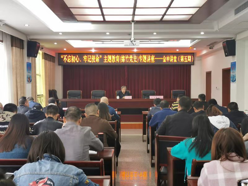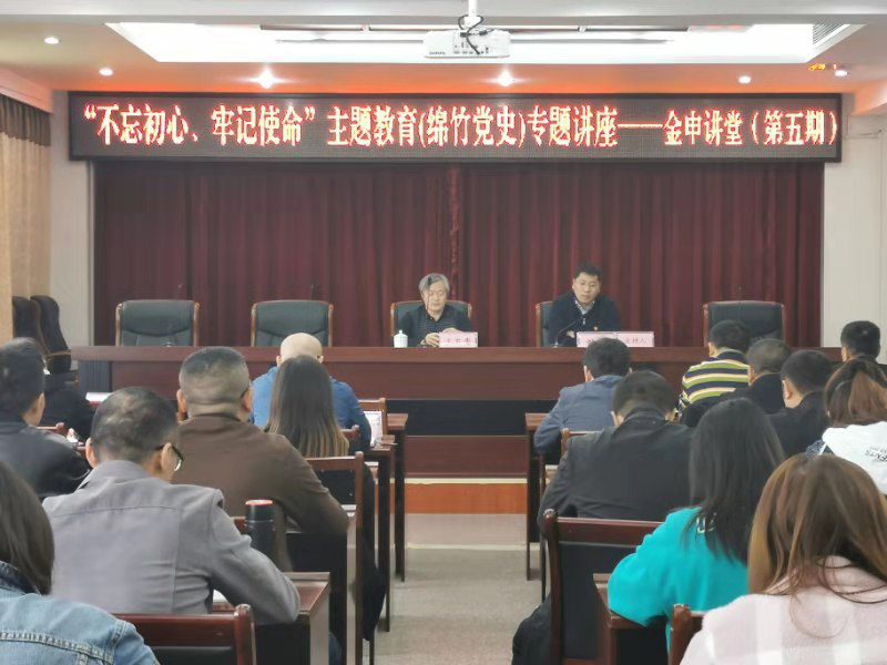 金申集团公司邀请原中共绵竹市委党史研究室主任、现绵竹市书法家协会主席王友贵老师进行“不忘初心、牢记使命”主题教育党史专题讲座——金申讲堂(第五期),集团公司全体党员同志、发展对象等50余人参加了讲座。