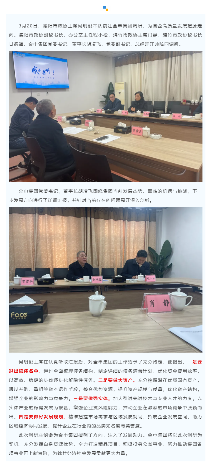 德阳市政协主席何明俊一行调研金申集团