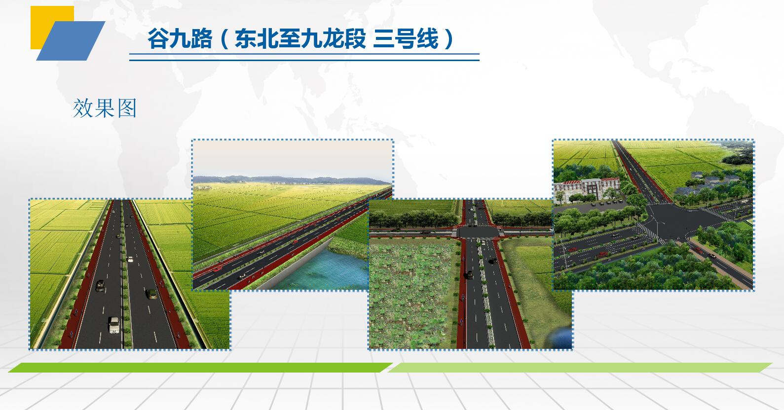 谷九路起于二环路东北镇谷王村处,止点在九龙场镇与省道S216相接,道路总长约6.5公里,工程总投资1亿元。
