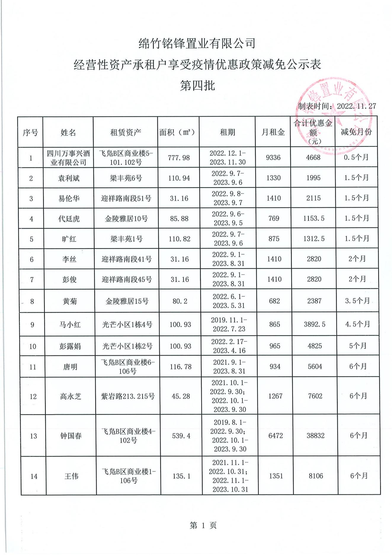 经营性资产承租户享受疫情优惠政策减免公示表(第四批)