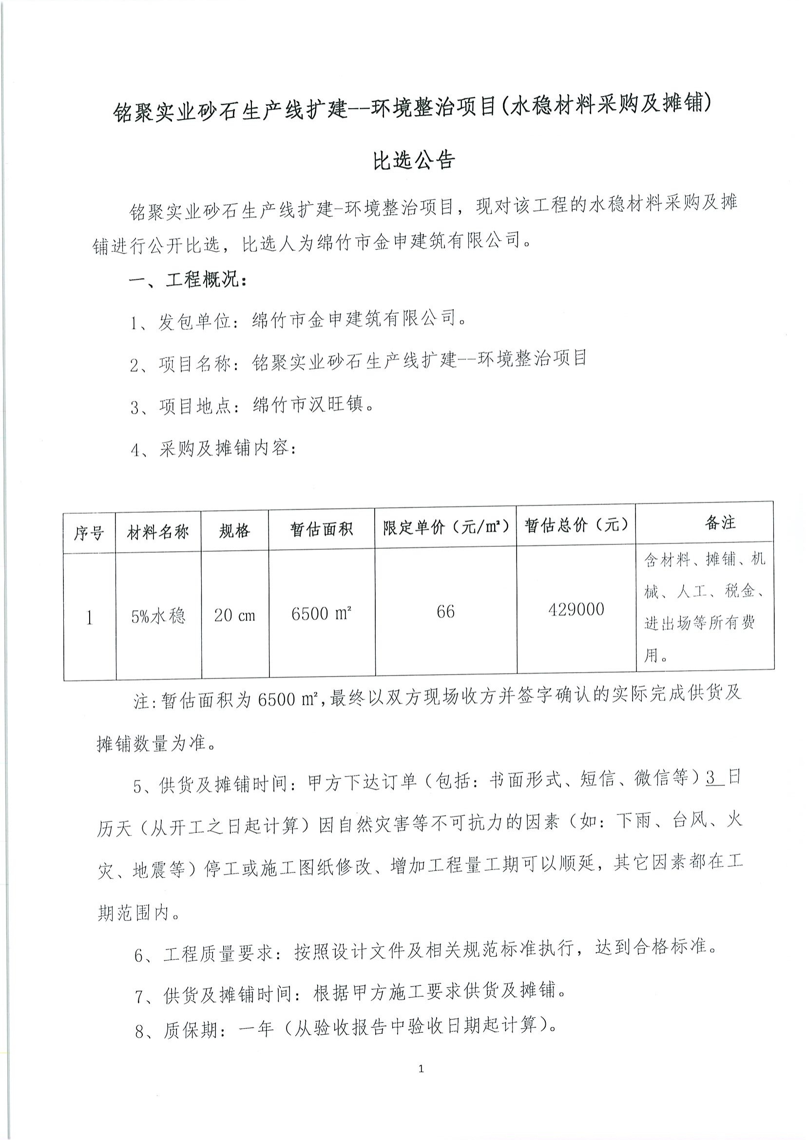 铭聚实业砂石生产线扩建——环境整治项目比选公告