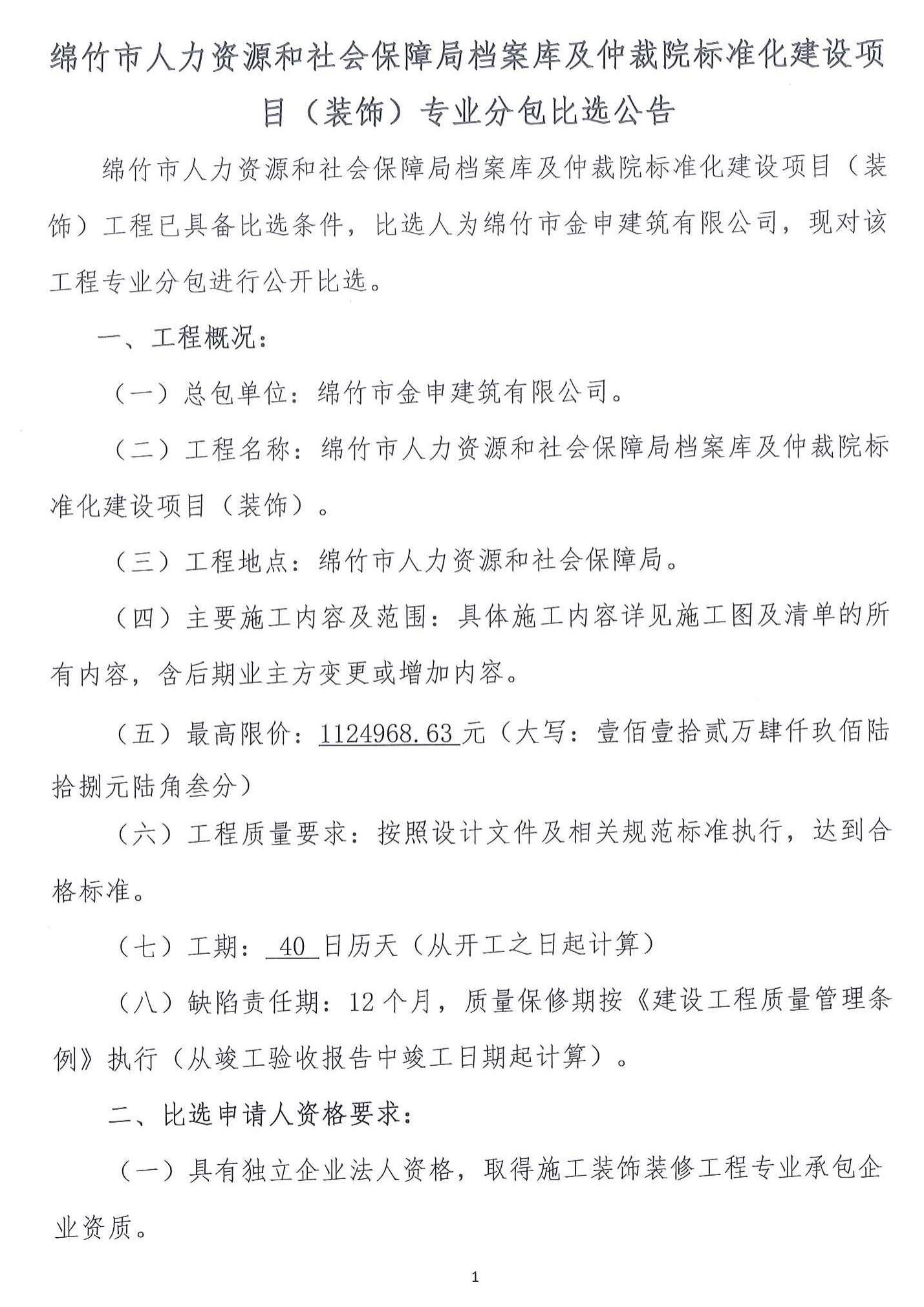 绵竹人社局档案库及仲裁院建设项目(装饰)分包比选公告