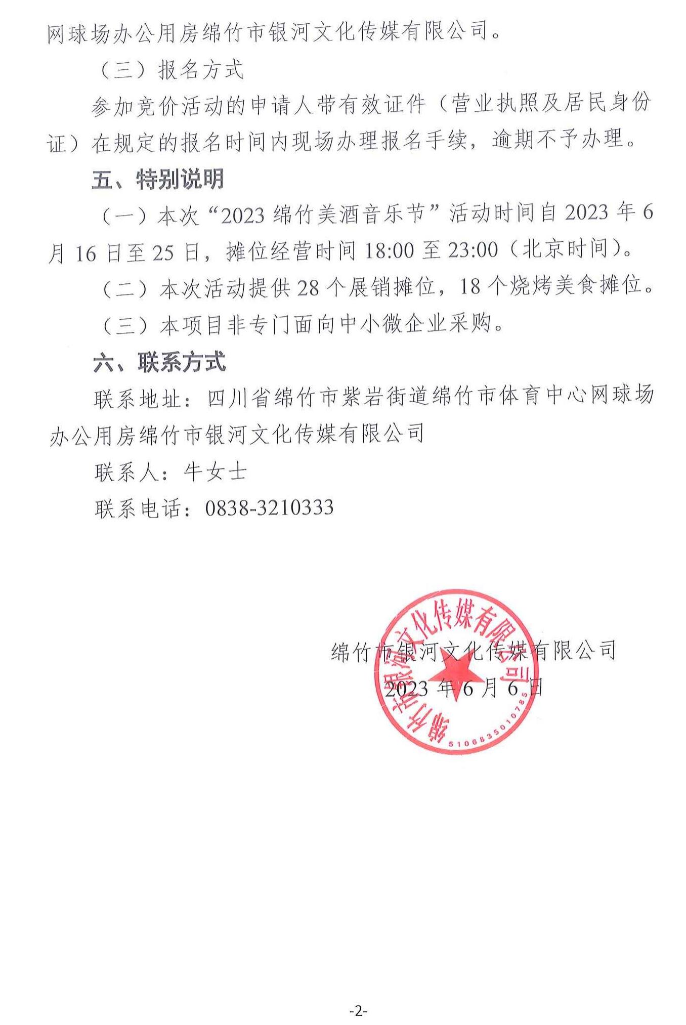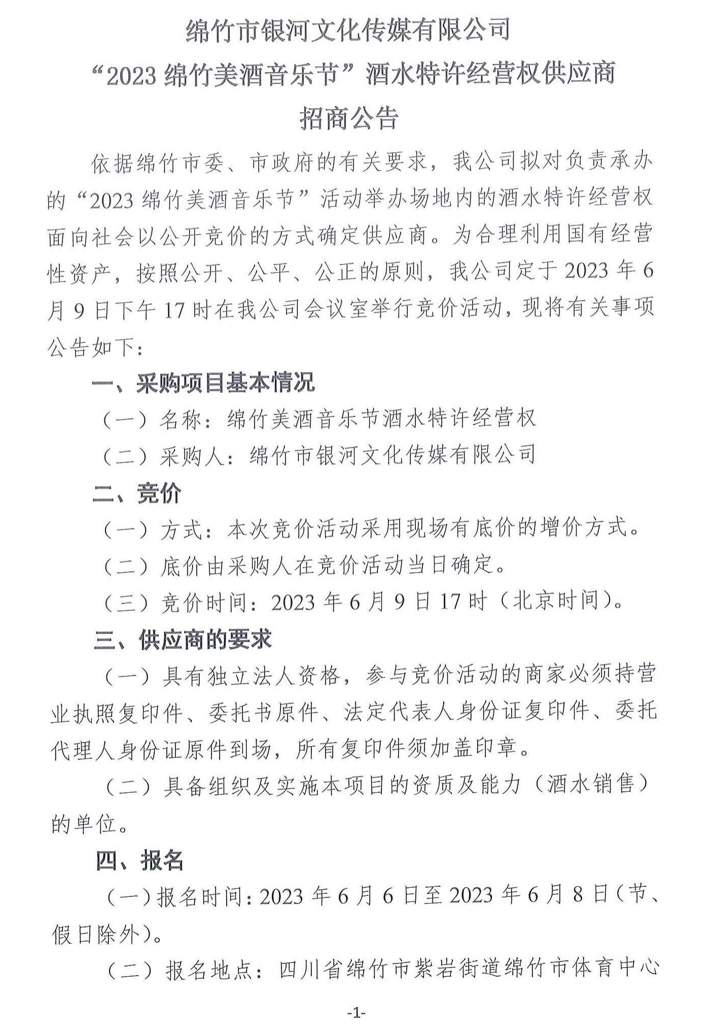 “2023绵竹美酒音乐节”酒水特许经营权供应商招商公告